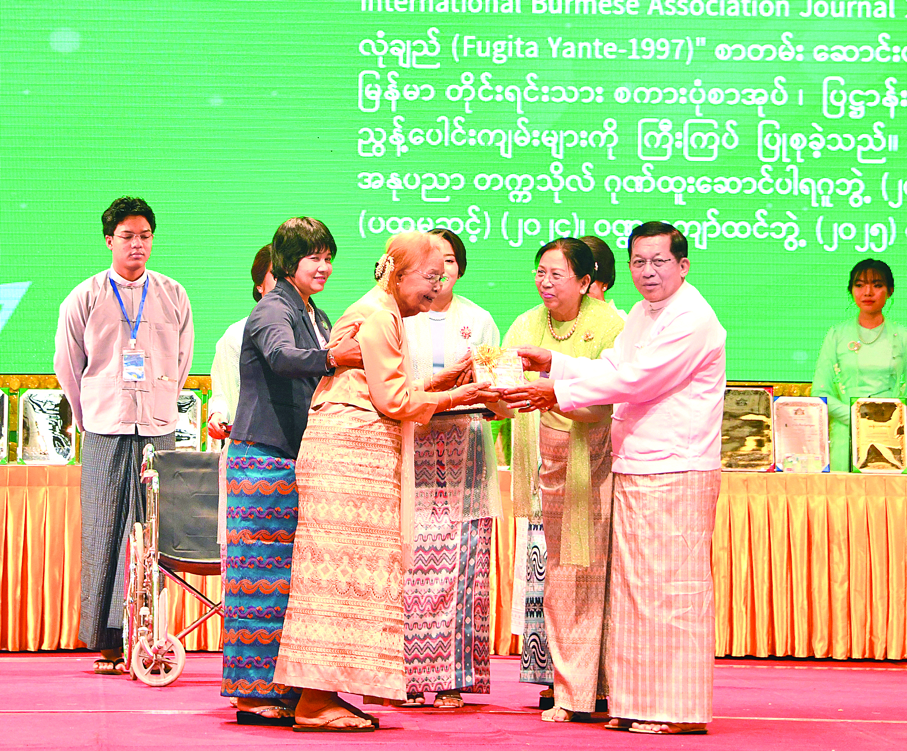 ယင်းနောက် နိုင်ငံတော်ယာယီသမ္မတ နိုင်ငံတော်လုံခြုံရေးနှင့်အေးချမ်းသာယာ ရေးကော်မရှင်ဥက္ကဋ္ဌနှင့်ဇနီးတို့က ၂၀၂၄ ခုနှစ်၊ အမျိုးသားစာပေတစ်သက်တာဆု ရရှိကြသည့် စာပေပညာရှင်ဆရာကြီးနှင့် ဆရာမကြီးများဖြစ်ကြသည့် ဦးသန်းညွန့် (ဇင်မင်း-သမိန်ထော)၊ ဦးကိုကို(ကို-တက္ကသိုလ်)၊ ဒေါက်တာဒေါ်ပို (မလေးပို)၊ ဒေါ်တင်ရီ (တင်ရီမ-ညောင်ဦး)၊ ဒေါက်တာ ဒေါ်ခင်သန်းဦး(မမိုးမြေ)တို့ကို နိုင်ငံတော်မှ ချီးမြှင့်သည့် ဂုဏ်ပြုမှတ်တမ်းလွှာ၊ ဂုဏ်ပြု ချီးမြှင့်ငွေများနှင့် နိုင်ငံတော်ယာယီသမ္မတ နိုင်ငံတော် လုံခြုံရေးနှင့်အေးချမ်းသာယာရေးကော်မရှင်ဥက္ကဋ္ဌနှင့်ဇနီးတို့က ချီးမြှင့်သည့် အထူး ဂုဏ်ပြုလက်ဆောင်များကို ပေးအပ်ချီးမြှင့်သည်။