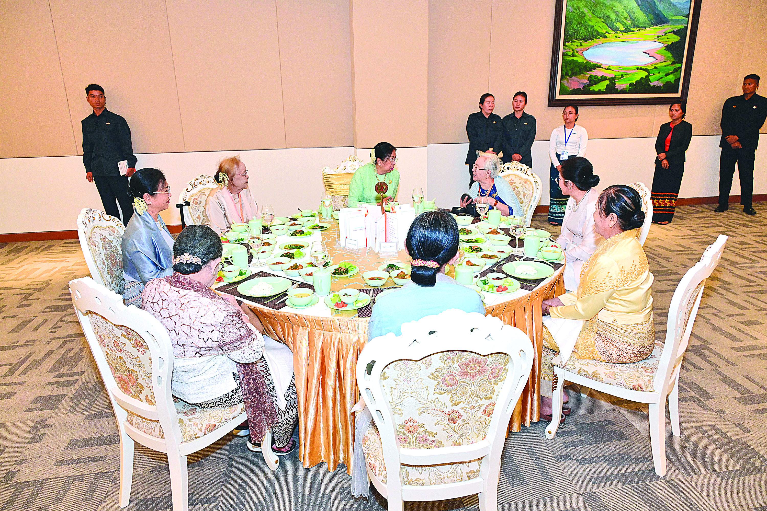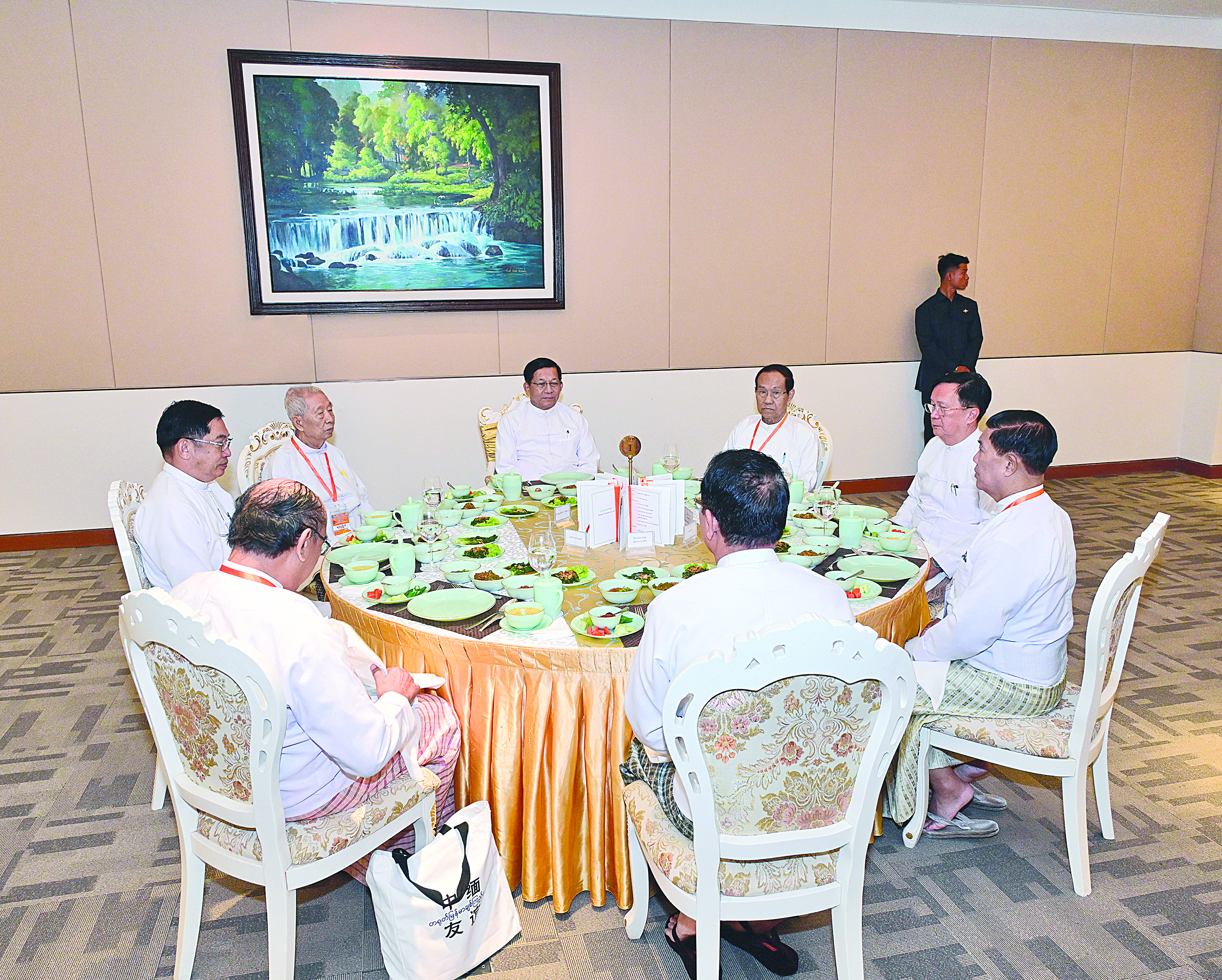 အခမ်းအနားအပြီးတွင် နိုင်ငံတော်ယာယီသမ္မတ နိုင်ငံတော်လုံခြုံရေးနှင့် အေးချမ်း သာယာရေးကော်မရှင်ဥက္ကဋ္ဌ နှင့်ဇနီးနှင့် အဖွဲ့ဝင်များသည် ၂၀၂၄ ခုနှစ် အတွက် အမျိုးသားစာပေတစ်သက်တာဆု၊ အမျိုးသားစာပေဆုနှင့် စာပေဗိမာန်စာမူဆု ရရှိခဲ့ကြ သူများ၊ အနုပညာရှင်များ၊ စာပေ ပညာရှင်များနှင့်အတူ ဂုဏ်ပြုနေ့လယ်စာကို အတူ တကွသုံးဆောင်ခဲ့ကြသည်။