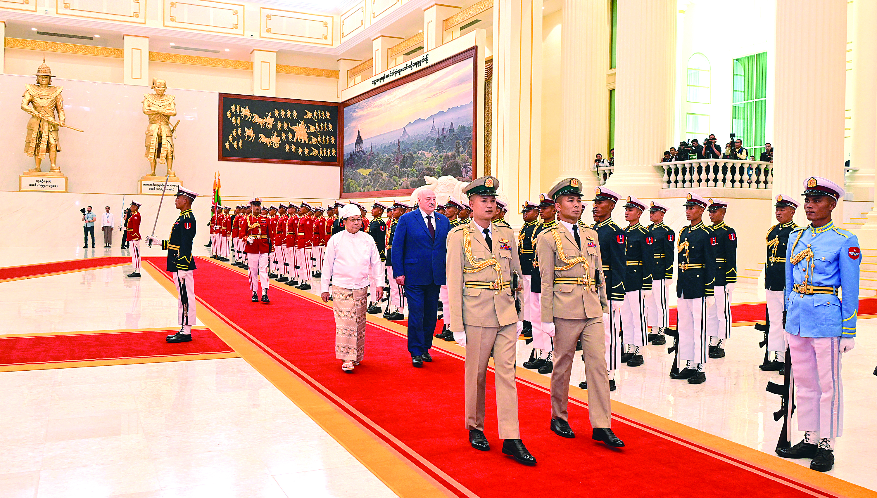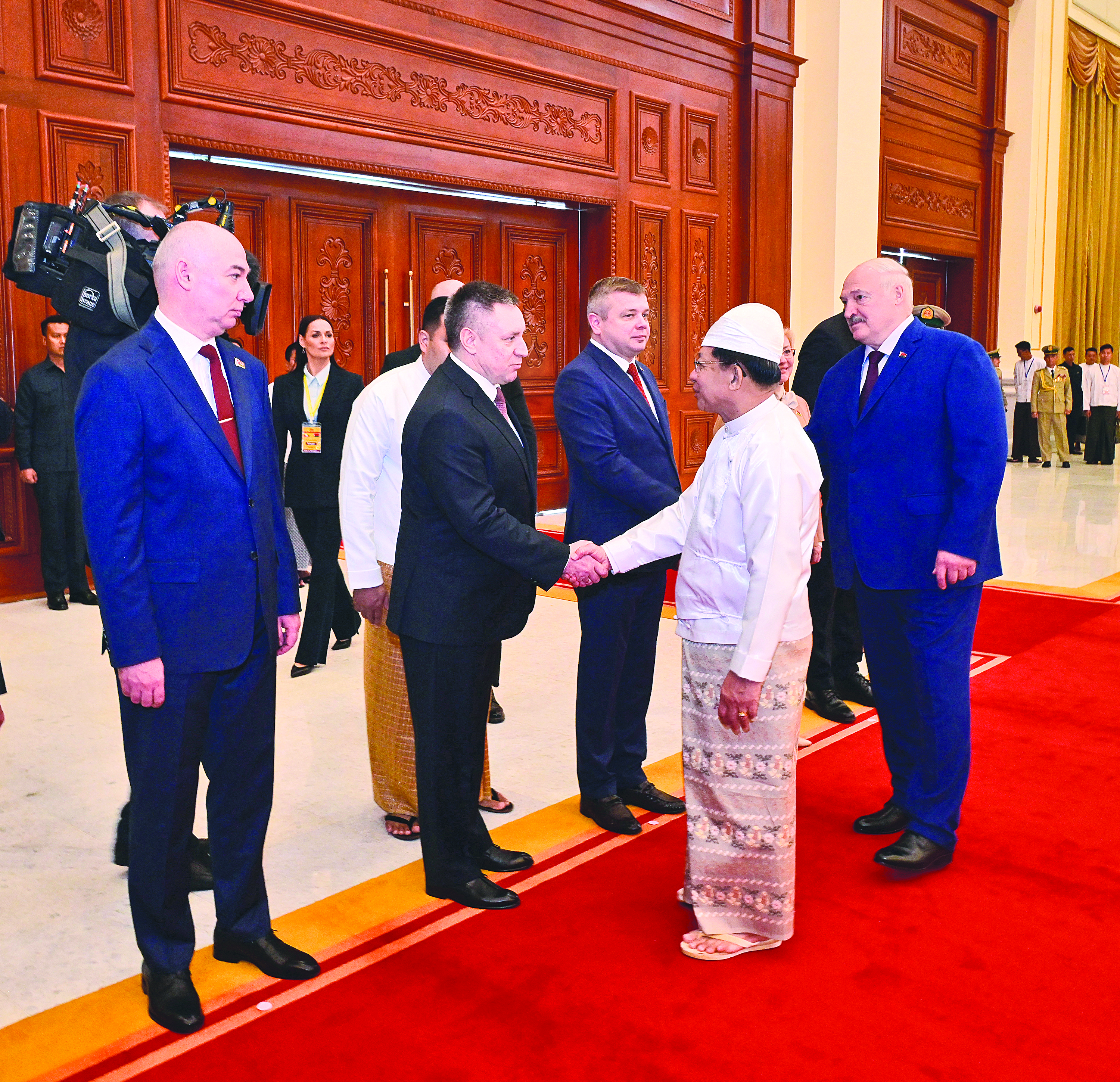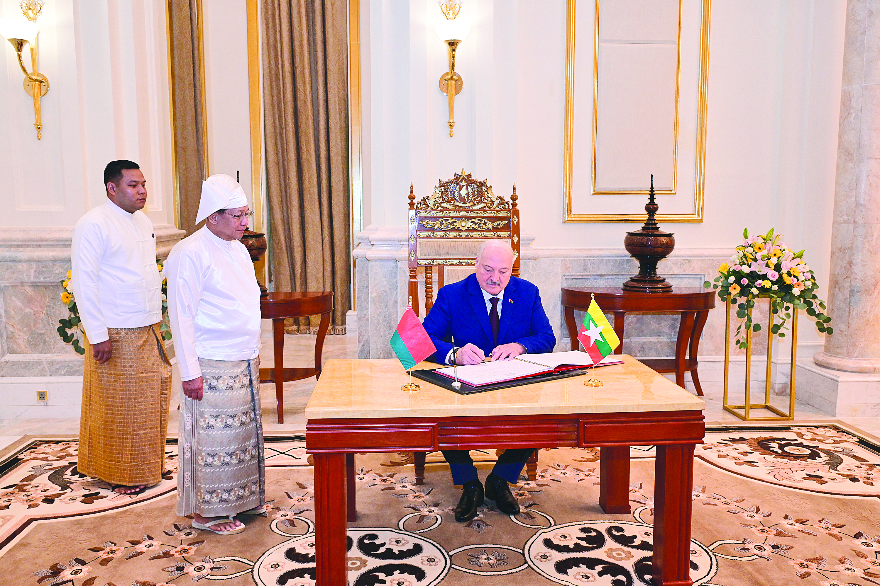 ယင်းနောက် ဘယ်လာရုစ်သမ္မတနိုင်ငံသမ္မတက ပြန်လည်ဆွေးနွေးပြောကြားရာ၌ မိမိဦးဆောင်သည့်ကိုယ်စားလှယ်အဖွဲ့အား မြန်မာနိုင်ငံမှ ယခုကဲ့သို့ လှိုက်လှဲနွေးထွေးစွာကြိုဆိုမှုများအတွက် များစွာကျေးဇူးတင်ရှိပါကြောင်းနှင့် မြန်မာနိုင်ငံ၏ကြိုဆိုမှုများနှင့်ပြင်ဆင်ထားရှိမှုများကို မြင်တွေ့ရသည့်အချိန်၌လည်း အလွန်ပင်ဂုဏ်ယူဝမ်းမြောက်မိပါကြောင်း၊ မိမိတို့နှစ်နိုင်ငံအနေဖြင့် အလှမ်းကွာဝေးသော်လည်း ချစ်ကြည်ရင်းနှီးမှုသည် တိုးတက်ကောင်းမွန်လျက်ရှိပါကြောင်း၊ ဘယ်လာရုစ်နိုင်ငံသည်စက်မှုနိုင်ငံဖြစ်ပြီး စက်မှု၊ ဆေးဝါးနည်းပညာ၊ ပညာရေး၊ စိုက်ပျိုးရေးတို့တွင် အဆင့်မီနည်းပညာရပ်များကို ပိုင်ဆိုင်ထားသည့်နိုင်ငံဖြစ်ပြီး မြန်မာနိုင်ငံအတွက် လိုအပ်သည့်ကဏ္ဍများတွင်အပြည့်အဝပူးပေါင်းဆောင်ရွက်သွားမည်ဖြစ်ပါကြောင်း၊ စစ်ဘက်နည်းပညာဆိုင်ရာနှင့် ကုန်သွယ်မှုဆိုင်ရာများတွင်လည်း တိုးမြှင့်ဆောင်ရွက်သွားမည်ဖြစ်ပါကြောင်း၊ နှစ်နိုင်ငံအကြား သက်ဆိုင်ရာတာဝန်ရှိသူများဖြင့် စီးပွားရေးဖိုရမ်များကို ကျင်းပပြုလုပ်နိုင်ခဲ့ပြီး စီးပွားရေးဆိုင်ရာပူးပေါင်းဆောင်ရွက်နိုင်မည့် လိုအပ်ချက်များကို ဆွေးနွေးဆောင်ရွက်နိုင်ခဲ့ပြီးဖြစ်ကြောင်း၊ လက်ရှိအခြေအနေတွင် နှစ်နိုင်ငံ ပူးပေါင်းဆောင်ရွက်မှုမြှင့်တင်ရေးဆိုင်ရာလမ်းပြမြေပုံ (၂၀၂၆-၂၀၂၈) ကိုလည်း ရေးဆွဲနိုင်ခဲ့ပြီးဖြစ်၍ ဆက်လက်ဆောင်ရွက်သွားမည်ဖြစ်ပါကြောင်း၊ ဘယ်လာရုစ်နိုင်ငံ အနေဖြင့် မြန်မာနိုင်ငံအပေါ် နိုင်ငံတကာမျက်နှာစာများ၊ အဖွဲ့အစည်းများအကြားတွင် အမြဲတမ်း ထောက်ခံရပ်တည်ပေးသွားမည်ဖြစ်ပါကြောင်း၊ မြန်မာနိုင်ငံအနေဖြင့် ဘယ်လာရုစ်နိုင်ငံနှင့်ပူးပေါင်းဆောင်ရွက်လိုသည့် ကိစ္စရပ် မှန်သမျှကို ကြိုဆိုလျက်ရှိပါကြောင်းဖြင့် ပြန်လည်ဆွေးနွေးပြောကြားသည်။