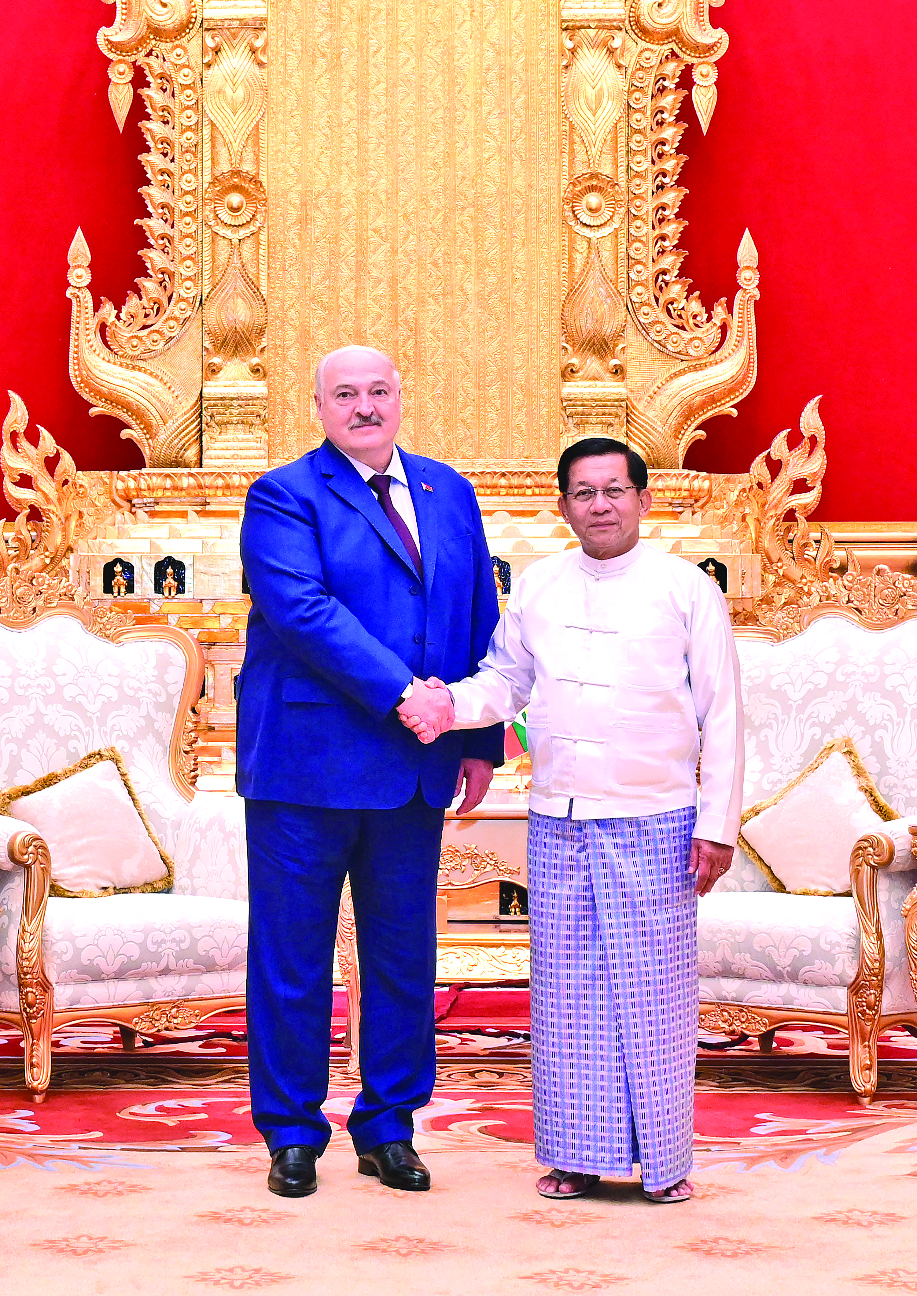 ထို့နောက် နိုင်ငံတော်ယာယီသမ္မတ နိုင်ငံတော်လုံခြုံရေးနှင့် အေးချမ်းသာယာရေးကော်မရှင်ဥက္ကဋ္ဌနှင့် ဘယ်လာရုစ်သမ္မတနိုင်ငံသမ္မတတို့သည် နှစ်နိုင်ငံအကြား စီးပွားရေးဆိုင်ရာပူးပေါင်းဆောင်ရွက်မှုများနှင့်ရင်းနှီးမြှုပ်နှံမှုများကို ဆက်လက်တိုးမြှင့်ဆောင်ရွက်သွားနိုင်မည့် အခြေအနေများ၊ ပညာရေး၊ ကျန်းမာရေး၊ စက်မှု၊ စိုက်ပျိုးမွေးမြူရေးနှင့်စစ်ဘက်နည်းပညာဆိုင်ရာ စသည့်နယ်ပယ်အသီးသီးတွင် ပူးပေါင်းဆောင်ရွက်မှုများကို မြှင့်တင်ဆောင်ရွက်သွားမည့် အခြေအနေများ၊ မြန်မာနိုင်ငံအစိုးရအနေဖြင့် နိုင်ငံတကာနှင့် တစ်ကမ္ဘာလုံးကို အန္တရာယ်ပေးနေသည့် အွန်လိုင်းလိမ်လည်မှုများ၊ အွန်လိုင်းလောင်းကစားမှုများတိုက်ဖျက်ရေးလုပ်ငန်းစဉ်များကို အမျိုးသားရေးတာဝန်တစ်ရပ်အနေဖြင့် အလေးထားတိုက်ဖျက်ဆောင်ရွက်လျက်ရှိမှု၊ ယခုအခါ မြန်မာ-ထိုင်း နယ်စပ်တွင်ရှိနေသည့် Online လောင်း ကစားမှုများသည် သမားရိုးကျမဟုတ်သည့် လုံခြုံရေးဆိုင်ရာ စိန်ခေါ်ချက်ဖြစ်သဖြင့် သတိထားဆောင်ရွက်လျက်ရှိမှု၊ ၎င်းလုပ်ငန်းသည် ကိုဗစ်-၁၉ ကာလနောက်ပိုင်း ၂၀၂၀ ပြည့်နှစ်မှ စတင်ကျယ်ပြန့်လာမှု၊ ၂၀၂၁ ခုနှစ် မြန်မာနိုင်ငံတွင် နိုင်ငံရေးမတည်ငြိမ်မှုဖြစ်လာချိန်၌ နယ်စပ်ဒေသများတွင် တည်ငြိမ်မှုနှင့် တရားဥပဒေစိုးမိုးမှုလျော့နည်းလာသည်ကို အခွင့်ကောင်းယူပြီး တရားမဝင်လက်နက်ကိုင်အဖွဲ့များနှင့်ပူးပေါင်း၍ အွန်လိုင်းလောင်းကစားမှုကိုအခြေချခဲ့မှု၊ အွန်လိုင်းလောင်းကစားမှု ပြုလုပ်သည့်နေရာများမှ ဖမ်းဆီးရမိသူ နိုင်ငံပေါင်း ၅၂ နိုင်ငံမှ ပြည်ပနိုင်ငံသား ၇၀၀၀၀ နီးပါးခန့်ကိုထိန်းသိမ်း၍ မိခင်နိုင်ငံသို့ပြန်ပို့လျက်ရှိမှု၊ ကျန်ရှိသည့်ပြည်ပနိုင်ငံသား ၁၀၀၀ ခန့်ကိုလည်း ပြန်ပို့ရန်ဆောင်ရွက်လျက်ရှိမှုနှင့် အွန်လိုင်းလိမ်လည် လောင်းကစားမှုများ လုံးဝပြန်လည်အခြေမချနိုင်စေရေး၊ ဒုစရိုက်လုပ်ငန်းများထပ်မံမလုပ်ဆောင်နိုင်စေရေးအတွက် တရားမဝင်ဆောက်လုပ်ထားသည့် အဆောက်အအုံများကိုလည်း အပြီးတိုင်ဖျက်ဆီးဖြိုချမှုများ ဆောင်ရွက်လျက်ရှိပြီး အမြစ်ပြတ်ချေမှုန်းသွားမည့်အခြေအနေများ၊ မြန်မာနိုင်ငံတွင် ပါတီစုံဒီမိုကရေစီအထွေထွေရွေးကောက်ပွဲတစ်ရပ်ကို မကြာမီကာလအတွင်း ကျင်းပပြုလုပ်သွားမည်ဖြစ်ပြီး ဘယ်လာရုစ်နိုင်ငံမှလည်း လေ့လာစောင့်ကြည့်ရေးအဖွဲ့စေလွှတ်သွားမည့်အခြေအနေများ၊ နှစ်နိုင်ငံအကြား ချစ်ကြည်ရင်းနှီးမှုနှင့်ပူးပေါင်းဆောင်ရွက်မှုများကို ကဏ္ဍပေါင်းစုံ၌ ဆက်လက်တိုးမြှင့်ဆောင်ရွက်သွားမည့်အခြေအနေများနှင့်စပ်လျဉ်း၍ ရင်းနှီးပွင့်လင်းစွာ အမြင်ချင်းဖလှယ်ဆွေးနွေးကြသည်။