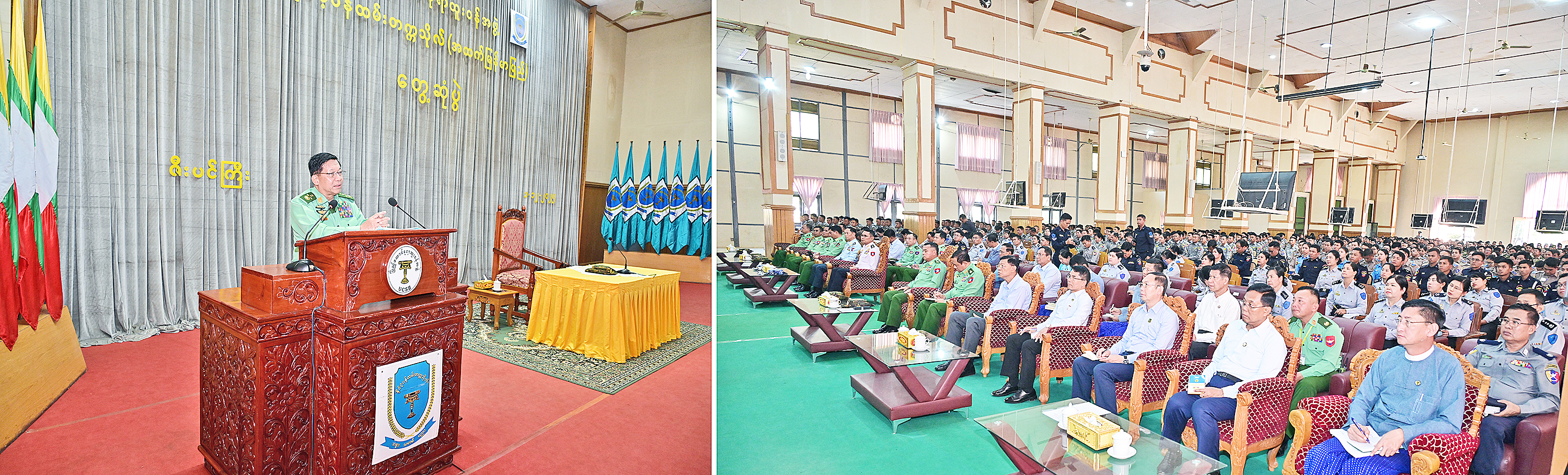 ပြည်ထောင်စုသမ္မတမြန်မာနိုင်ငံတော် ယာယီသမ္မတ နိုင်ငံတော်လုံခြုံရေးနှင့်အေးချမ်းသာယာရေး ကော်မရှင်ဥက္ကဋ္ဌ ဗိုလ်ချုပ်မှူးကြီးမင်းအောင်လှိုင်သည် မန္တလေးတိုင်းဒေသကြီး၊ ပြင်ဦးလွင်မြို့နယ်၊ ဇီးပင်ကြီးရှိ နိုင်ငံ့ဝန်ထမ်းတက္ကသိုလ် (အထက် မြန်မာပြည်)၊ ရဲအရာရှိလေ့ကျင့်ရေးကျောင်း (ဇီးပင်ကြီး) နှင့် ဗဟိုမီးသတ်သင်တန်း ကျောင်း(ပြင်ဦးလွင်)တို့မှ နည်းပြအရာရှိများနှင့် သင်တန်းသား၊သင်တန်းသူများအား ယနေ့မွန်းလွဲပိုင်းတွင်နိုင်ငံ့ဝန်ထမ်းတက္ကသိုလ် (အထက်မြန်မာပြည်)ရှိ ရတနာခန်းမ၌ တွေ့ဆုံအမှာစကားပြောကြားသည်။