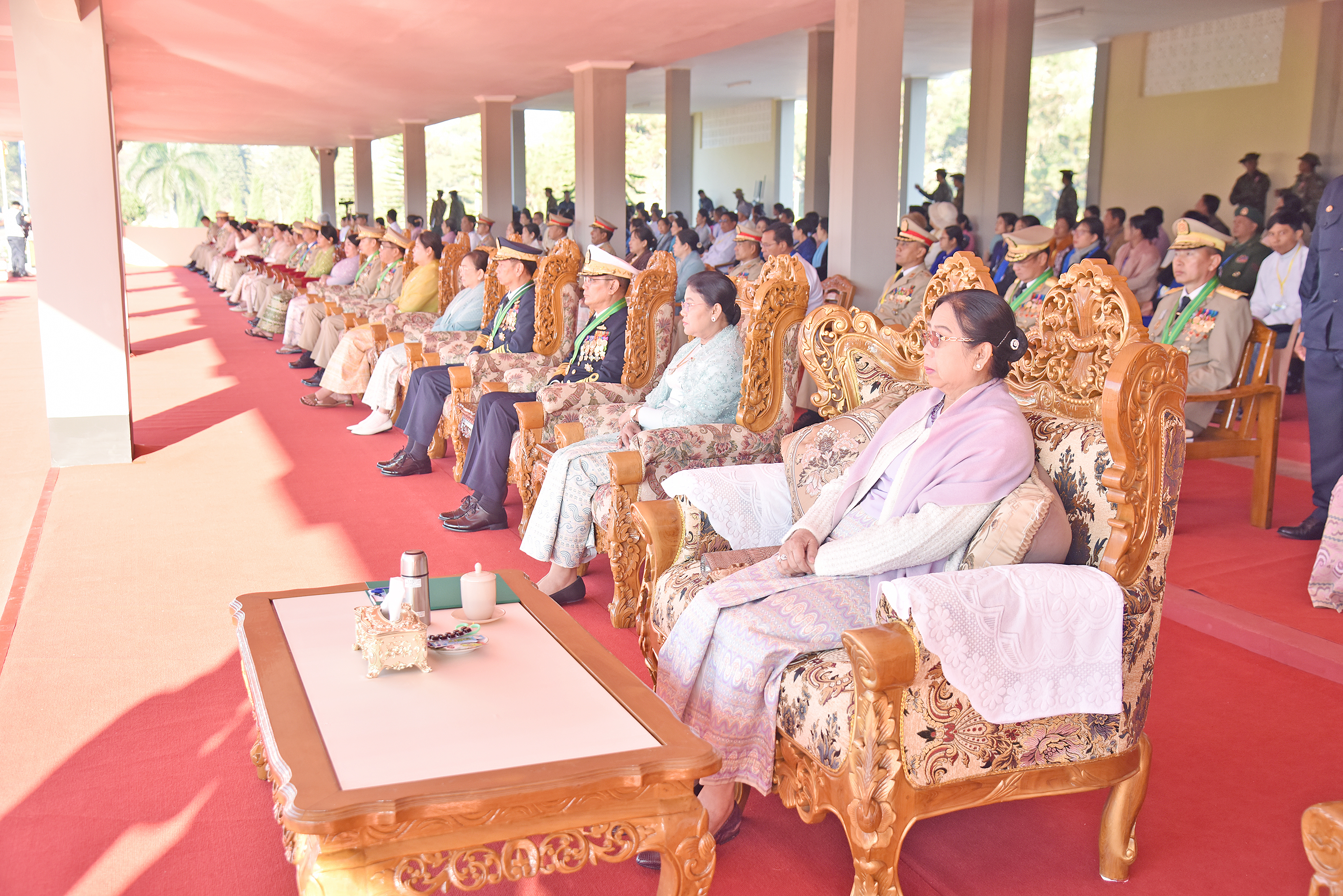 အဆိုပါအခမ်းအနားသို့ နိုင်ငံတော်လုံခြုံရေးနှင့်အေးချမ်းသာယာရေးကော်မရှင်ဥက္ကဋ္ဌ တပ်မတော်ကာကွယ်ရေးဦးစီးချုပ်နှင့်အတူဇနီးဒေါ်ကြူကြူလှ၊ ကာကွယ်ရေးဦးစီး ချုပ် (ရေ)ဗိုလ်ချုပ်ကြီး ဇေယျကျော်ထင် ထိန်ဝင်းနှင့်ဇနီး၊ ကာကွယ်ရေးဦးစီးချုပ်(လေ) ဗိုလ်ချုပ်ကြီး ဇေယျကျော်ထင် စည်သူ ထွန်းအောင်နှင့်ဇနီး၊ ကာကွယ်ရေးဦးစီးချုပ်ရုံးမှ အဆင့်မြင့်တပ်မတော်အရာရှိကြီးများနှင့် ဇနီးများ၊ ပြည်ထောင်စုအဆင့်ပုဂ္ဂိုလ်များ၊ ပြည်ထောင်စုဝန်ကြီးများနှင့် ဇနီးများ၊ မန္တလေး တိုင်းဒေသကြီးဝန်ကြီးချုပ်၊ တိုင်းမှူးများ၊ တပ်မတော်နည်းပညာ တက္ကသိုလ်ကျောင်း အုပ်ကြီး၊ ပြင်ဦးလွင်တပ်နယ်မှ တာဝန်ရှိသူများ၊ ကျောင်းဆင်းဗိုလ်လောင်းများ၏ မိဘဆွေမျိုးများနှင့် ဖိတ်ကြားထား သည့်ဧည့်သည့်တော်များ တက်ရောက်ကြသည်။