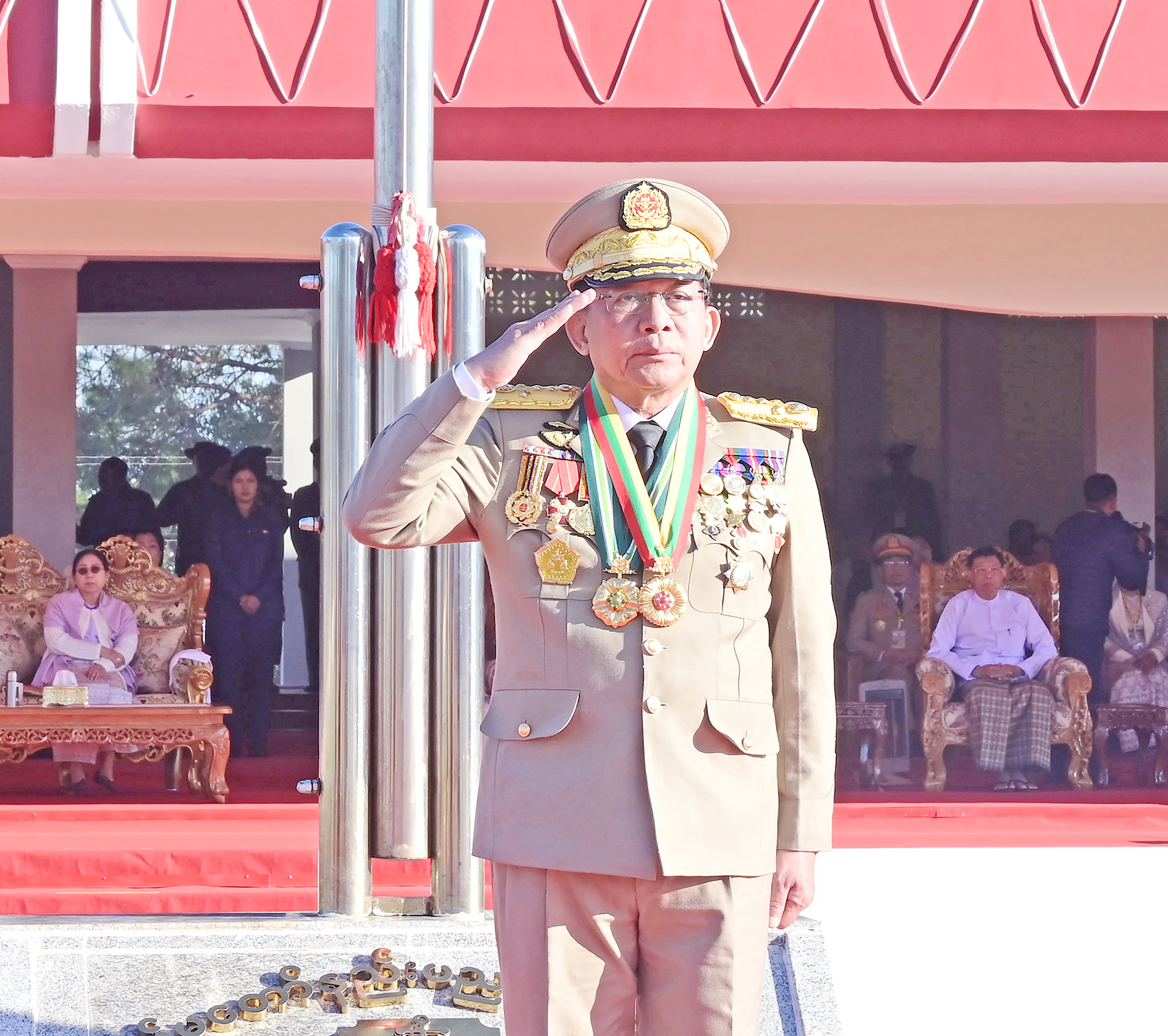 ယင်းနောက် နိုင်ငံတော်လုံခြုံရေးနှင့် အေးချမ်းသာယာရေးကော်မရှင် ဥက္ကဋ္ဌ တပ်မတော် ကာကွယ်ရေးဦးစီးချုပ် ဗိုလ်ချုပ်မှူးကြီး သတိုးမဟာသရေစည်သူ သတိုးသီရိသုဓမ္မ မင်းအောင်လှိုင်သည် ဗိုလ်လောင်းတပ်ခွဲများ၏ အလေးပြုခြင်းကို ခံယူပြီးနောက် စစ်ရေးပြအခမ်းအနားမှ ပြန်လည်ထွက်ခွာသည်။