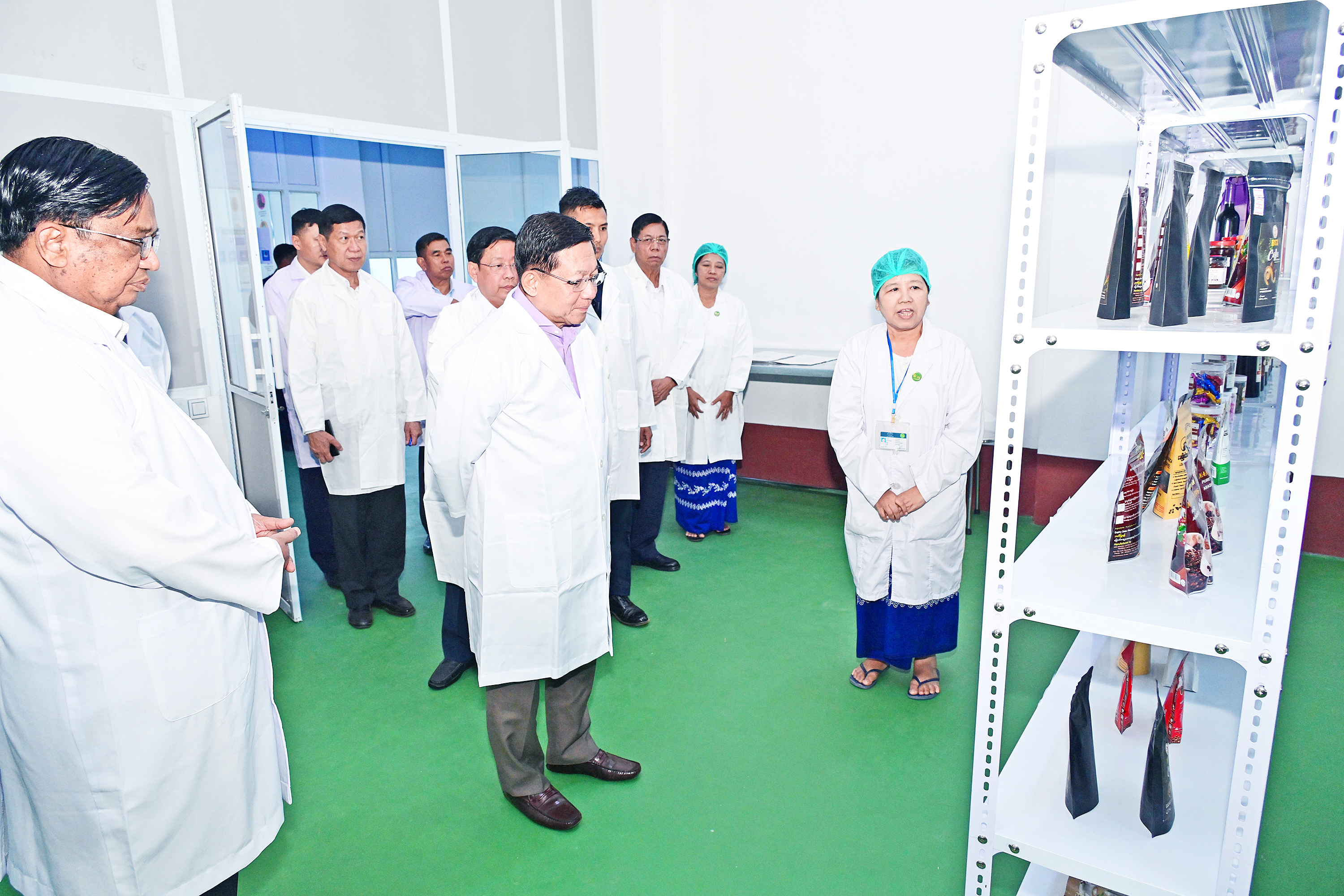 ထို့နောက် နိုင်ငံတော်ယာယီသမ္မတ နိုင်ငံတော်လုံခြုံရေးနှင့် အေးချမ်းသာယာ ရေးကော် မရှင်ဥက္ကဋ္ဌ သည် သုတေသနဌာနခွဲ(ပြင်ဦးလွင်)အတွင်း MSME လုပ်ငန်းများမှ လက်ခံရ ရှိသော နမူနာပစ္စည်းများအား ဓာတ်ခွဲစမ်းသပ်ခြင်းဆောင်ရွက်ထားရှိမှုနှင့် ဓာတ်ခွဲစမ်း သပ်ခြင်း လုပ်ငန်းဆောင်ရွက်နေမှုလုပ်ငန်းစဉ်အဆင့်ဆင့်အား လိုက်လံ ကြည့် ရှုစစ်ဆေး ခဲ့ပြီး တာဝန်ရှိသူများ၏ တင်ပြချက်များအပေါ် လိုအပ်သည်များ လမ်းညွှန်မှာကြား ခဲ့သည်။