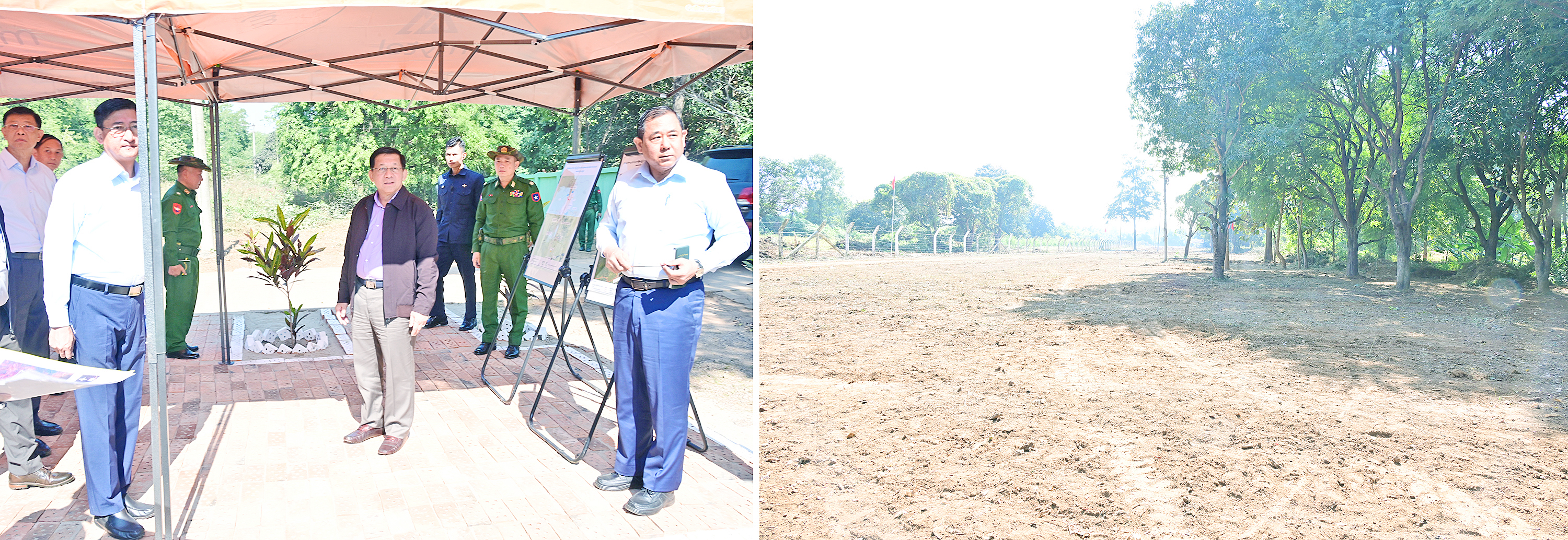 မန္တလေး–လားရှိုးလမ်းမကြီးမှဇီးပင်ကြီးကျေးရွာနှင့် ဗဟိုမီးသတ်သင်တန်းကျောင်းသို့ ဝင်ရောက်သည့် လမ်းသစ်ဖောက်လုပ်မည့် လျာထားလမ်းအူကြောင်းနေရာဦးစွာ နိုင်ငံတော်ယာယီသမ္မတနိုင်ငံတော်လုံခြုံရေးနှင့်အေးချမ်းသာယာရေးကော်မရှင်ဥက္ကဋ္ဌနှင့်အဖွဲ့ဝင်များသည် မန္တလေး–လားရှိုးလမ်းမကြီးမှ ဇီးပင်ကြီးကျေးရွာနှင့် ဗဟိုမီးသတ် သင်တန်းကျောင်းသို့ဝင်ရောက်သည့် လမ်းသစ်ဖောက်လုပ်မည့် လျာထားလမ်း အူကြောင်းနေရာတစ်လျှောက် လိုက်လံကြည့်ရှုစစ်ဆေးရာ တာဝန်ရှိသူများက လမ်းသစ်ဖောက်လုပ်နိုင်မည့်အခြေအနေများနှင့်ပတ်သက်၍ ရှင်းလင်းတင်ပြသည်။