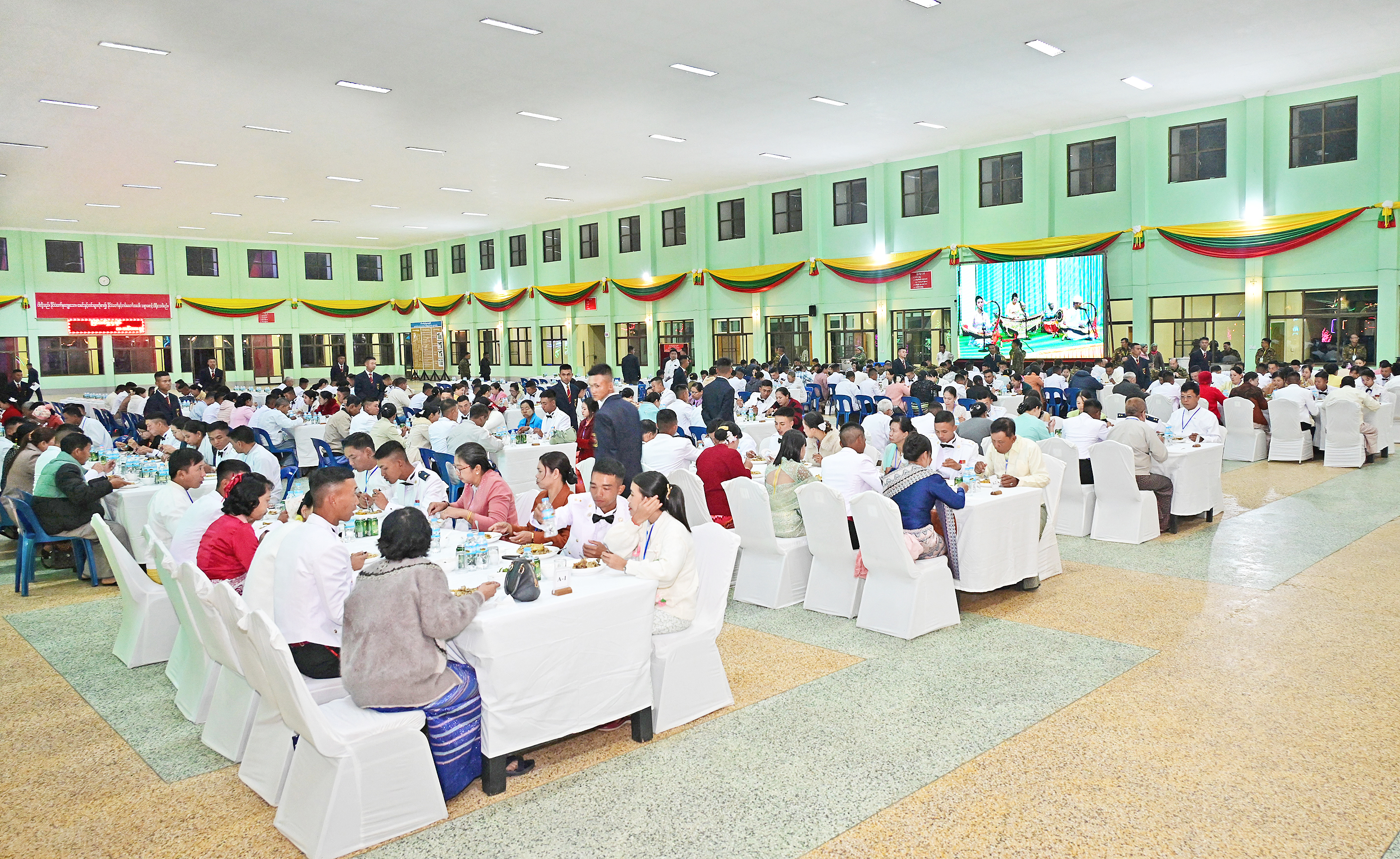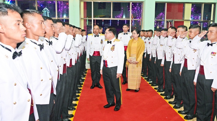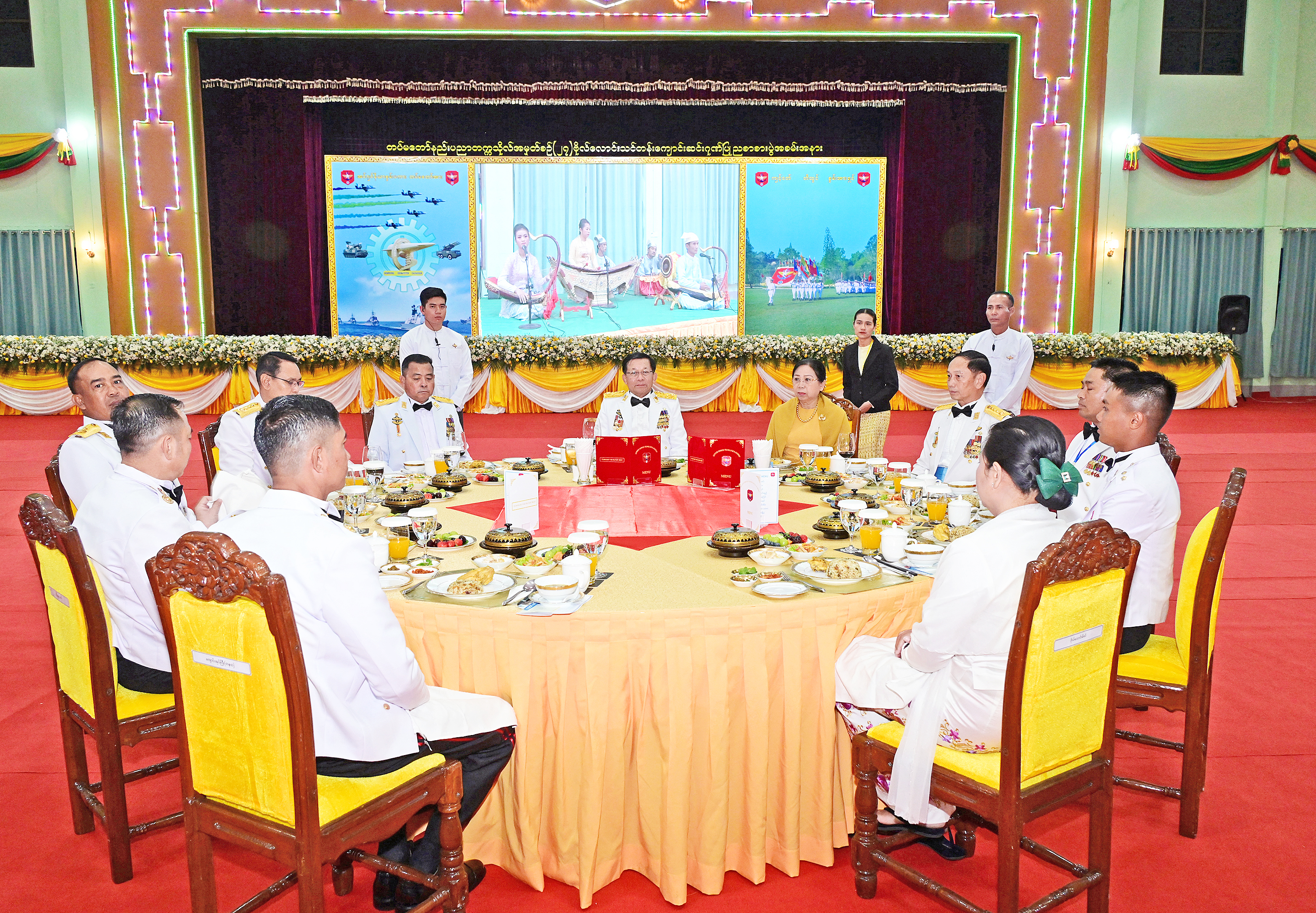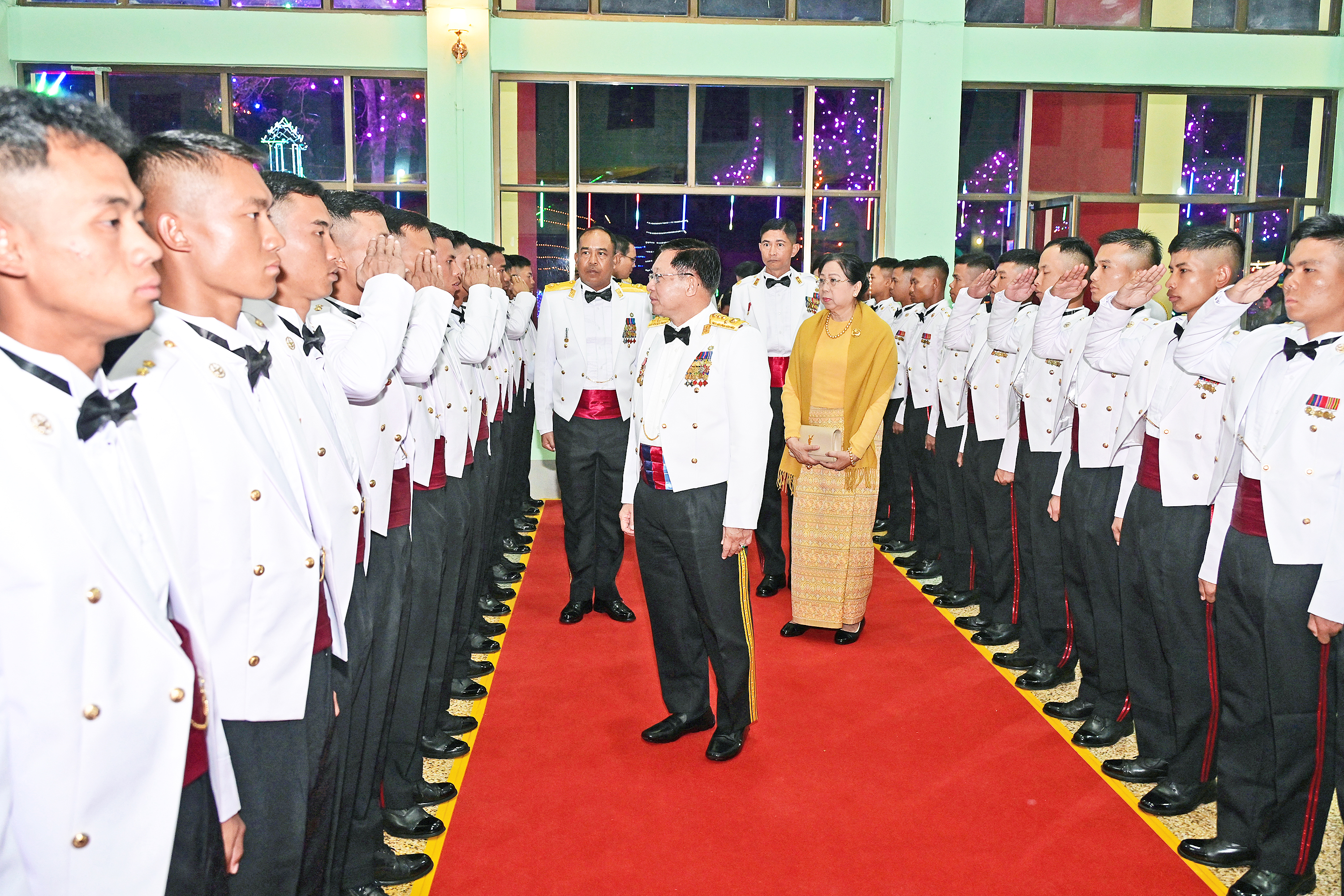 ဦးစွာ နိုင်ငံတော်လုံခြုံရေးနှင့် အေးချမ်းသာယာရေးကော်မရှင်ဥက္ကဋ္ဌ တပ်မတော် ကာကွယ်ရေးဦးစီးချုပ်က သင်တန်းဆင်းအရာရှိများအား တစ်ဦးချင်း ရင်းရင်းနှီးနှီး လိုက်လံနှုတ်ဆက်သည်။ ထို့နောက် နိုင်ငံတော်လုံခြုံရေးနှင့် အေးချမ်းသာယာရေး ကော်မရှင်ဥက္ကဋ္ဌ တပ်မတော်ကာကွယ်ရေးဦးစီးချုပ်နှင့် အဖွဲ့ဝင်များသည် သင်တန်း ဆင်းအရာရှိများ၊ ညစာစားပွဲ တက်ရောက်လာကြသူများနှင့်အတူ ဂုဏ်ပြုညစာကို အတူတကွ သုံးဆောင်ကြသည်။