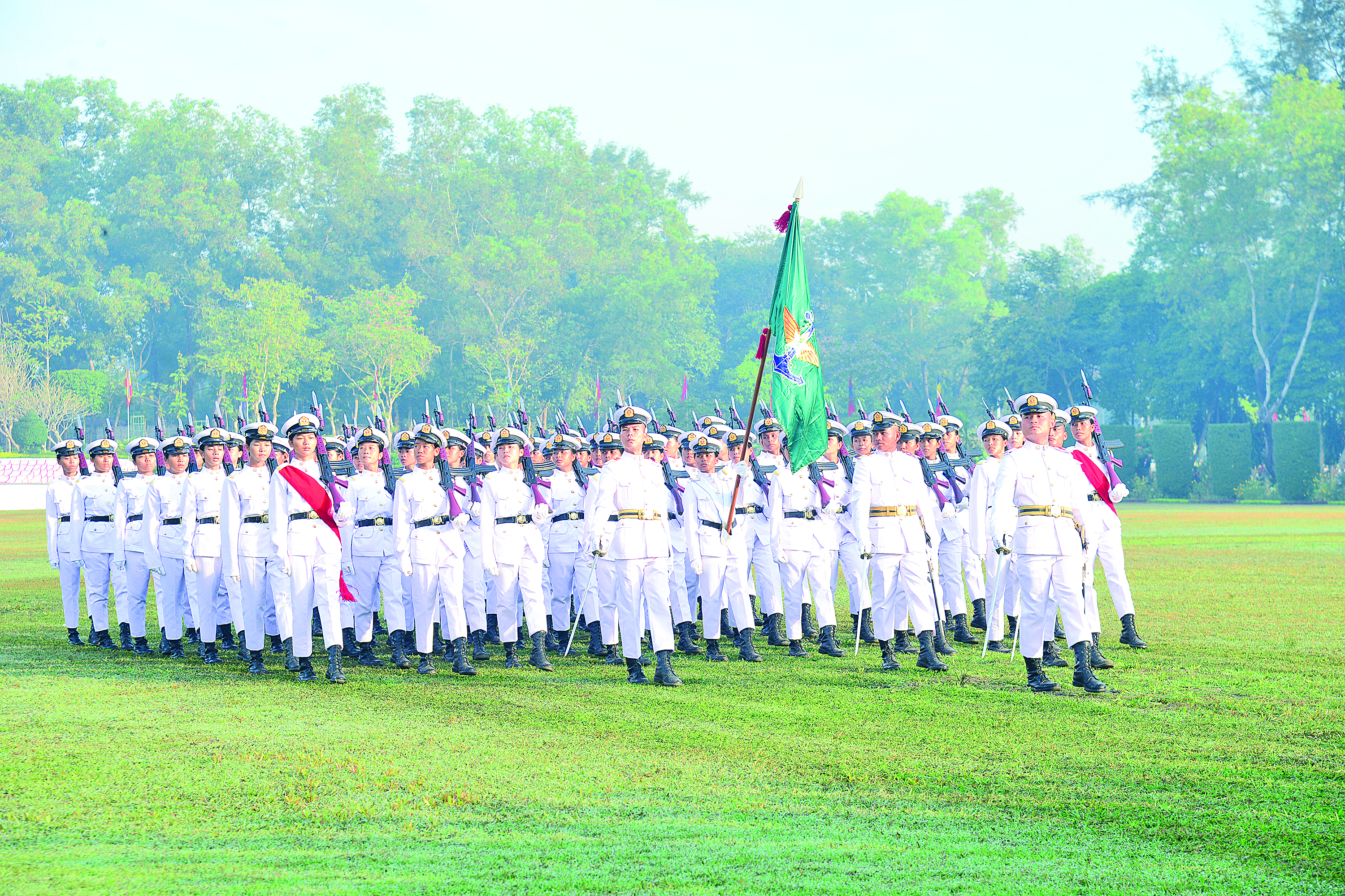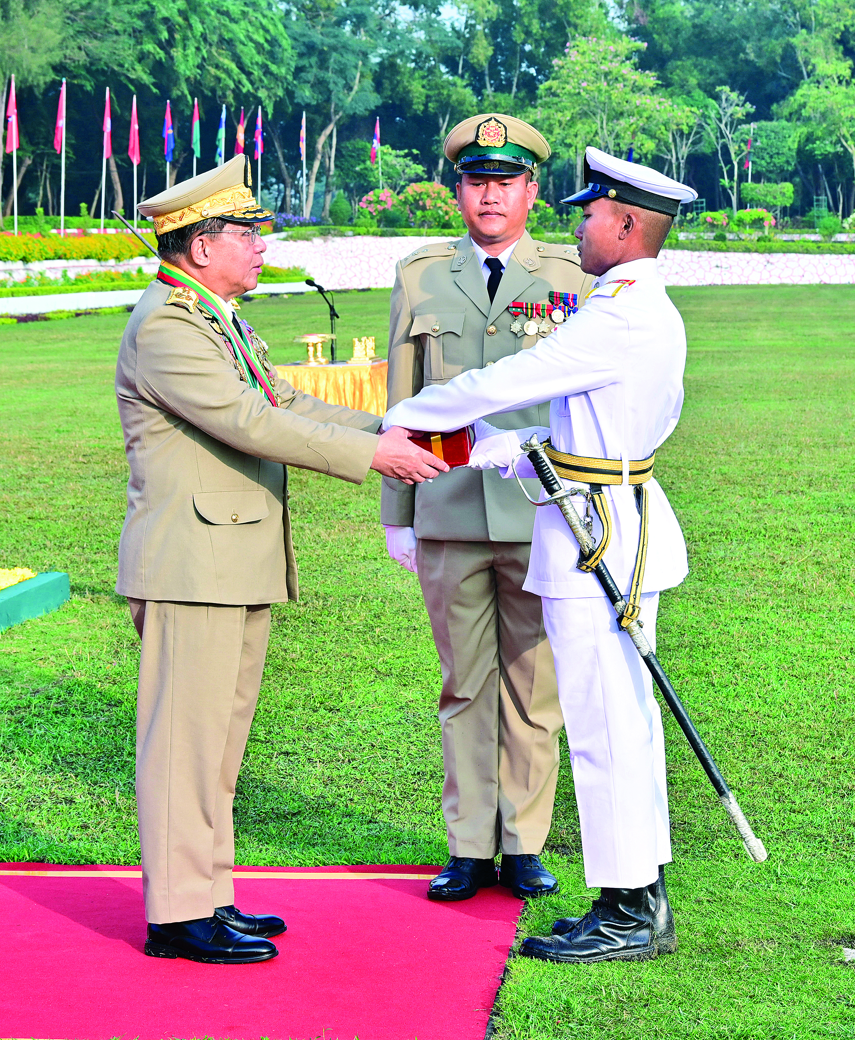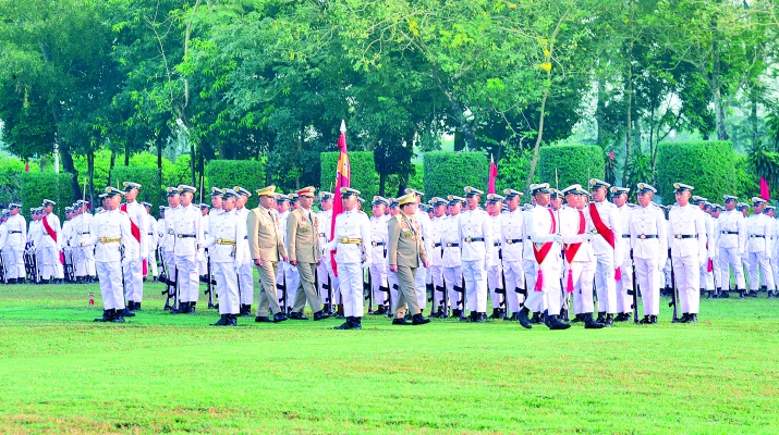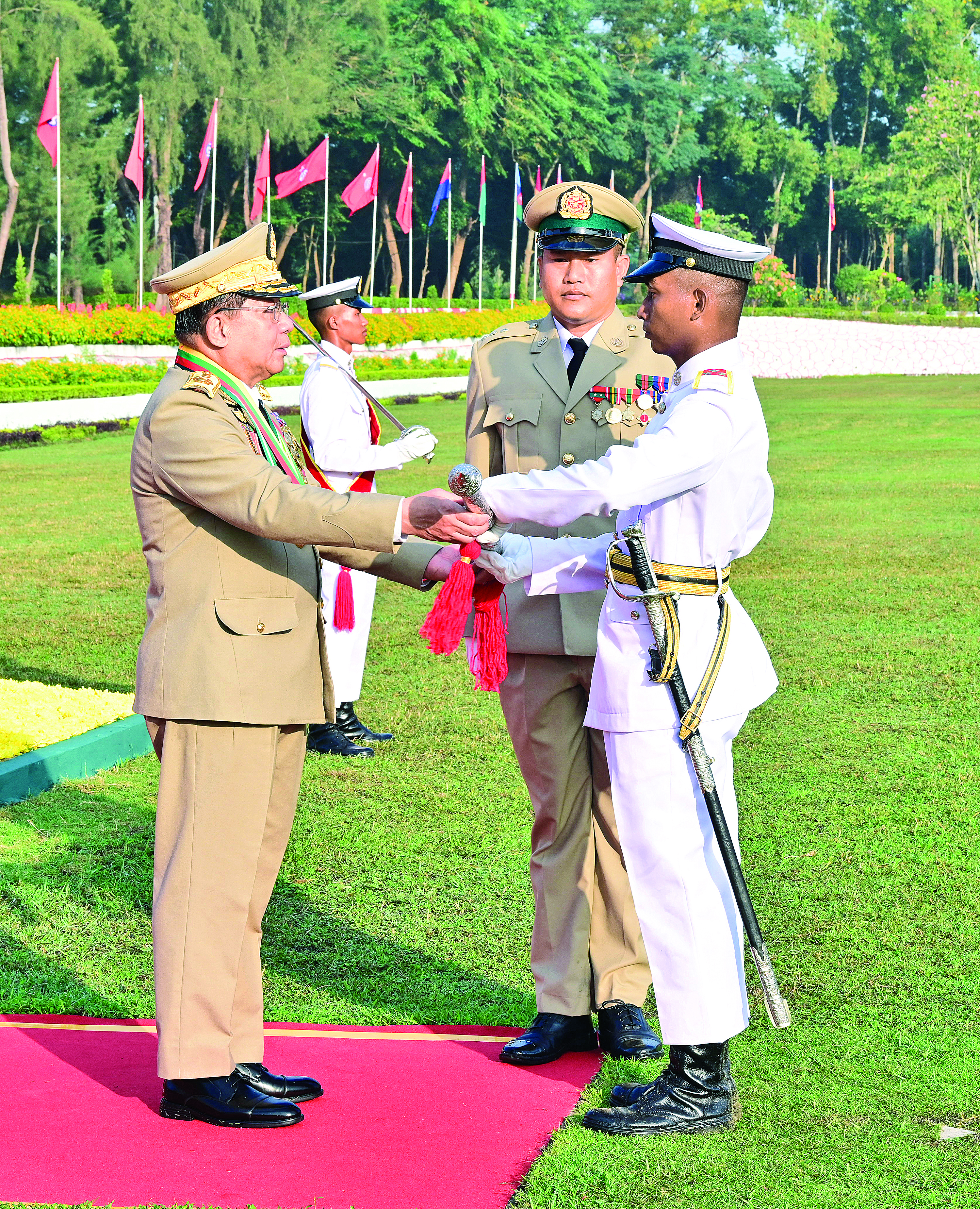 ယင်းနောက် နိုင်ငံတော်လုံခြုံရေးနှင့် အေးချမ်းသာယာရေးကော်မရှင်ဥက္ကဋ္ဌ တပ်မတော်ကာကွယ်ရေးဦးစီးချုပ် ဗိုလ်ချုပ်မှူးကြီး သတိုးမဟာသရေစည်သူ သတိုးသီရိသုဓမ္မမင်းအောင်လှိုင်သည် ဗိုလ်လောင်းတပ်ခွဲများ၏အလေးပြုခြင်းကိုခံယူပြီး စစ်ရေးပြအခမ်းအနားမှ ပြန်လည်ထွက်ခွာသည်။