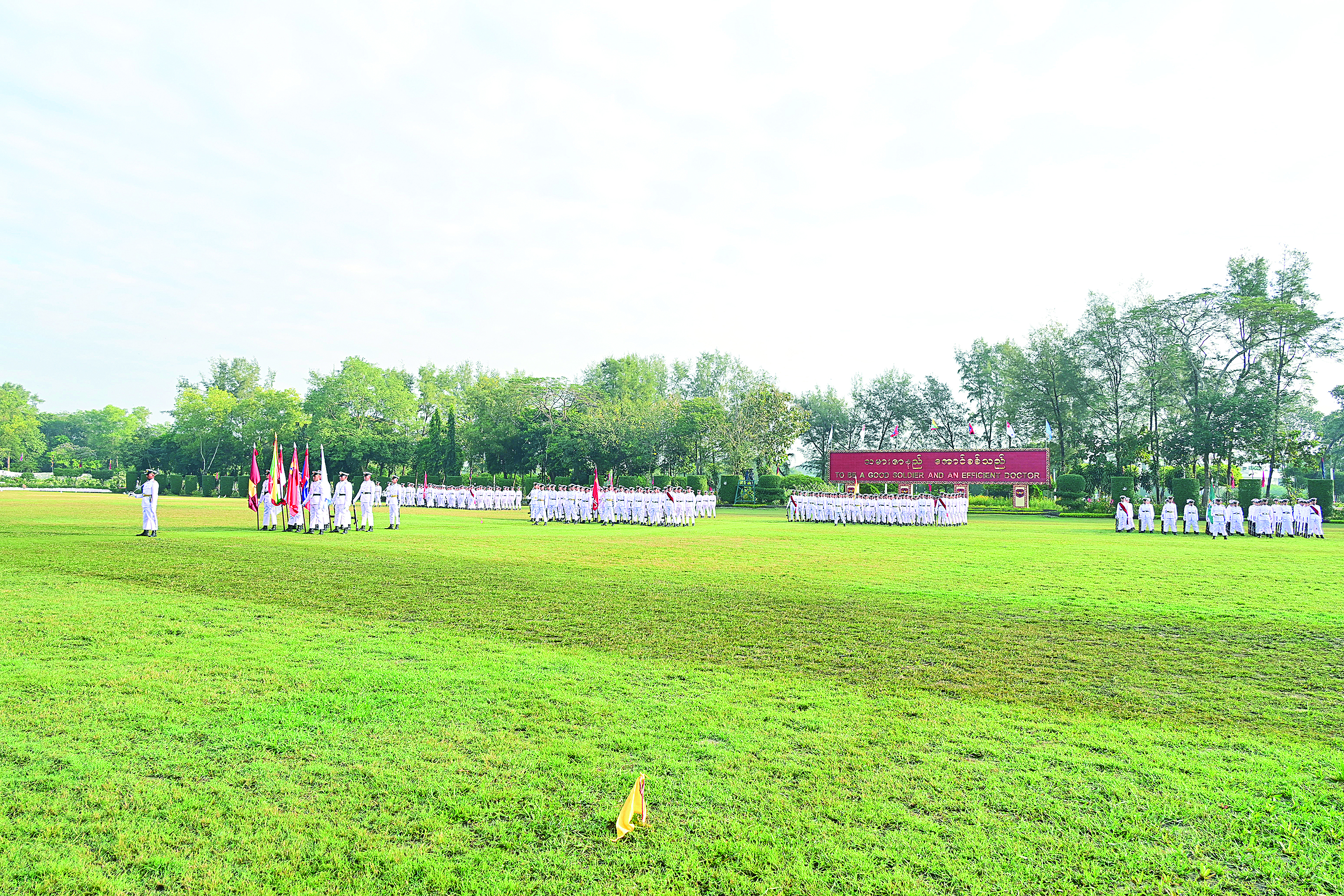 တပ်မတော်ဆေးတက္ကသိုလ်၊ ဗိုလ်လောင်းသင်တန်းအမှတ်စဉ်(၂၆) သင်တန်းဆင်းဂုဏ်ပြုစစ်ရေးပြအခမ်းအနားကို ယနေ့နံနက်ပိုင်းတွင် ရန်ကုန်မြို့ရှိ တပ်မတော်ဆေးတက္ကသိုလ်စစ်ရေးပြကွင်း၌ကျင်းပပြုလုပ်ရာနိုင်ငံတော်လုံခြုံရေးနှင့်အေးချမ်းသာယာရေးကော်မရှင်ဥက္ကဋ္ဌ တပ်မတော်ကာကွယ်ရေးဦးစီး ချုပ် ဗိုလ်ချုပ်မှူးကြီး သတိုးမဟာသရေစည်သူ သတိုးသီရိသုဓမ္မမင်းအောင်လှိုင် တက်ရောက်မိန့်ခွန်းပြောကြားသည်။