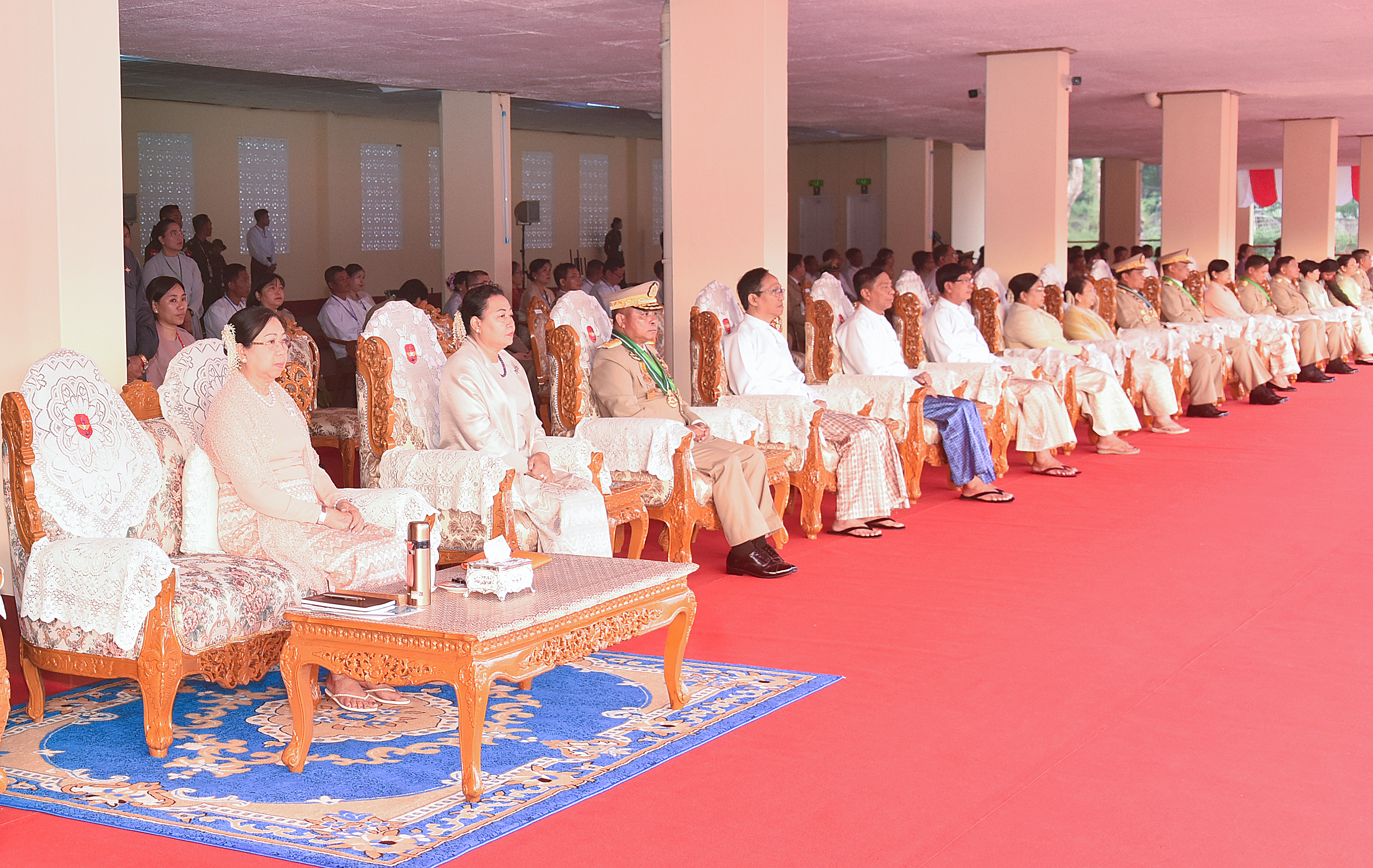 အဆိုပါအခမ်းအနားသို့ နိုင်ငံတော်လုံခြုံရေးနှင့် အေးချမ်းသာယာရေးကော်မရှင် ဥက္ကဋ္ဌ တပ်မတော်ကာကွယ်ရေးဦးစီးချုပ်နှင့်အတူ ဇနီး ဒေါ်ကြူကြူလှ၊ ကာကွယ်ရေးဦးစီးချုပ်(ရေ) ဗိုလ်ချုပ်ကြီးဇေယျကျော်ထင် ထိန်ဝင်းနှင့်ဇနီး၊ ကာကွယ်ရေးဦးစီးချုပ်(လေ) ဗိုလ်ချုပ်ကြီး ဇေယျကျော်ထင်စည်သူ ထွန်းအောင်နှင့်ဇနီး၊ ကာကွယ်ရေးဦးစီးချုပ်ရုံးမှ အဆင့်မြင့်တပ်မတော်အရာရှိကြီးများနှင့်ဇနီးများ၊ ပြည်ထောင်စုအဆင့်ပုဂ္ဂိုလ်များ၊ ပြည်ထောင်စုဝန်ကြီးများနှင့် ဇနီးများ၊ တိုင်းမှူးများ၊ တပ်မတော်ဆေးတက္ကသိုလ် ကျောင်းအုပ်ကြီးနှင့် မင်္ဂလာဒုံတပ်နယ်မှ တာဝန်ရှိသူများ၊ ကျောင်းဆင်းဗိုလ်လောင်းများ၏မိဘဆွေမျိုးများနှင့် ဖိတ်ကြားထားသည့်ဧည့်သည်တော်များ တက်ရောက်ကြသည်။
