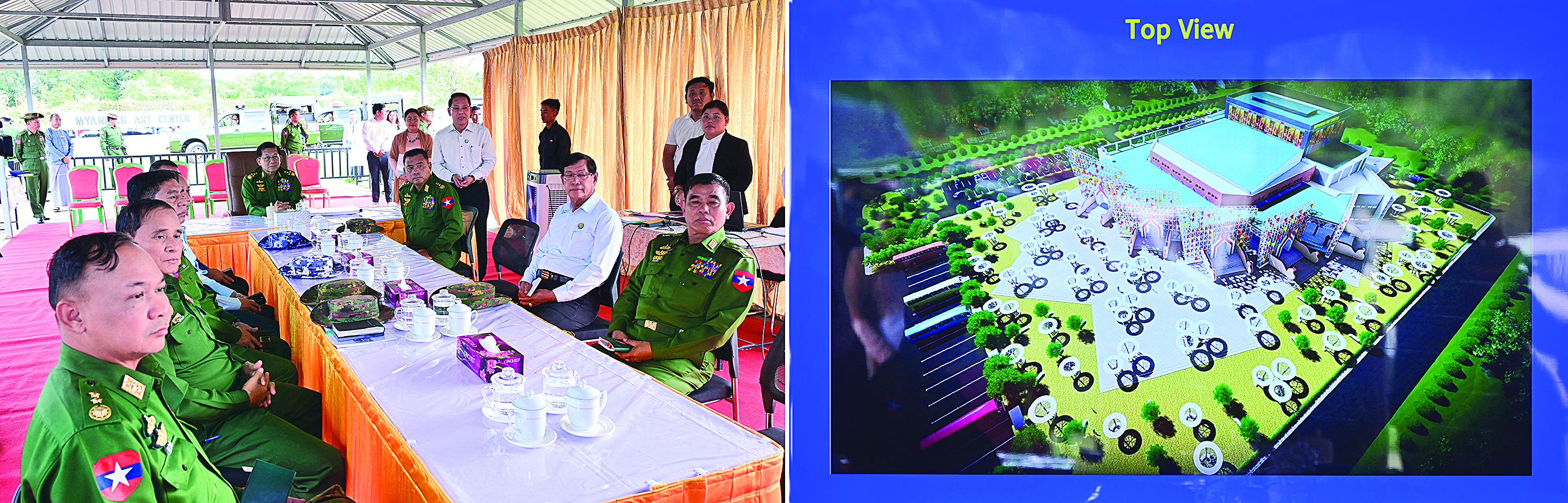 ထို့နောက် နိုင်ငံတော်ယာယီသမ္မတ နိုင်ငံတော်လုံခြုံရေးနှင့် အေးချမ်းသာယာရေး ကော်မရှင်ဥက္ကဋ္ဌနှင့် အဖွဲ့ဝင်များသည် နိုင်ငံတကာအဆင့်မီ အနုပညာဗဟိုဌာန (ရန်ကုန်) တည်ဆောက်ရေးလုပ်ငန်းခွင်အတွင်း လှည့်လည်ကြည့်ရှုစစ်ဆေး၍ ဆက်လက် အကောင်အထည်ဖော်ဆောင်ရွက်သွားနိုင်မည့် အခြေအနေများနှင့်ပတ်သက်၍ တာဝန်ရှိသူများ၏ တင်ပြချက်များအပေါ် လိုအပ်သည်များ လမ်းညွှန်မှာကြားသည်။