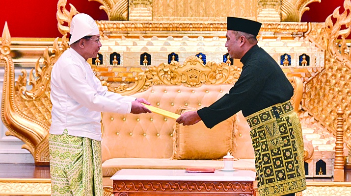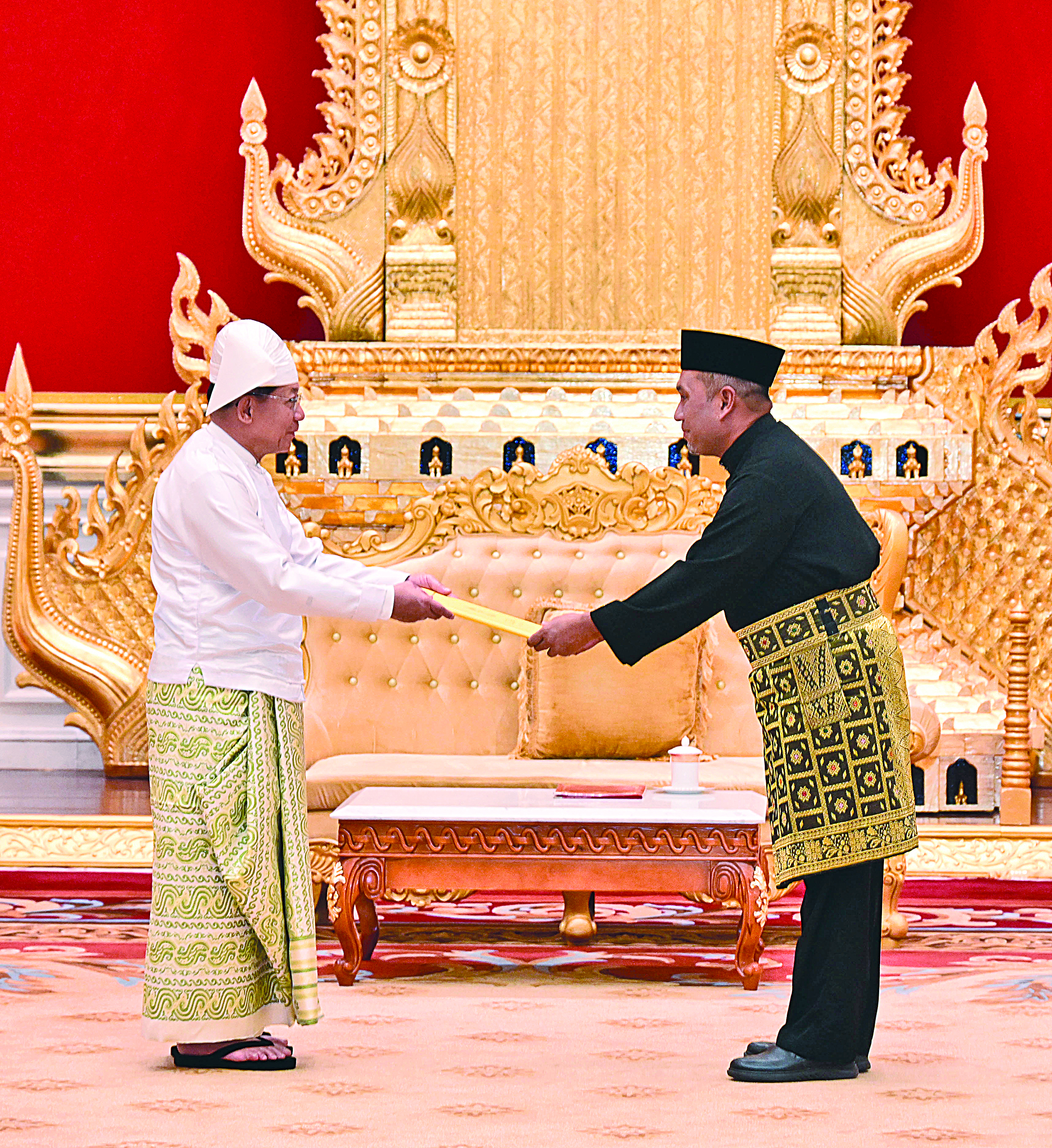 ပြည်ထောင်စုသမ္မတမြန်မာနိုင်ငံတော် ယာယီသမ္မတနိုင်ငံတော်လုံခြုံရေးနှင့် အေးချမ်းသာယာရေးကော်မရှင် ဥက္ကဋ္ဌ ဗိုလ်ချုပ်မှူးကြီးမင်းအောင်လှိုင်ထံ မြန်မာနိုင်ငံဆိုင်ရာ ဘရူနိုင်းဒါရူဆလမ်နိုင်ငံသံအမတ်ကြီး H.E. Haji Mohamad Sarif Pudin bin Matserudin က ယနေ့နံနက် ၁၁ နာရီတွင် နေပြည်တော်ရှိ အမျိုးသားကာကွယ်ရေးနှင့်လုံခြုံရေးကောင်စီရုံး၊ သံတမန်ဆောင်ဧည့်ခန်းမ၌ ၎င်း၏သံအမတ်ခန့်အပ်လွှာကို ပေးအပ်သည်။