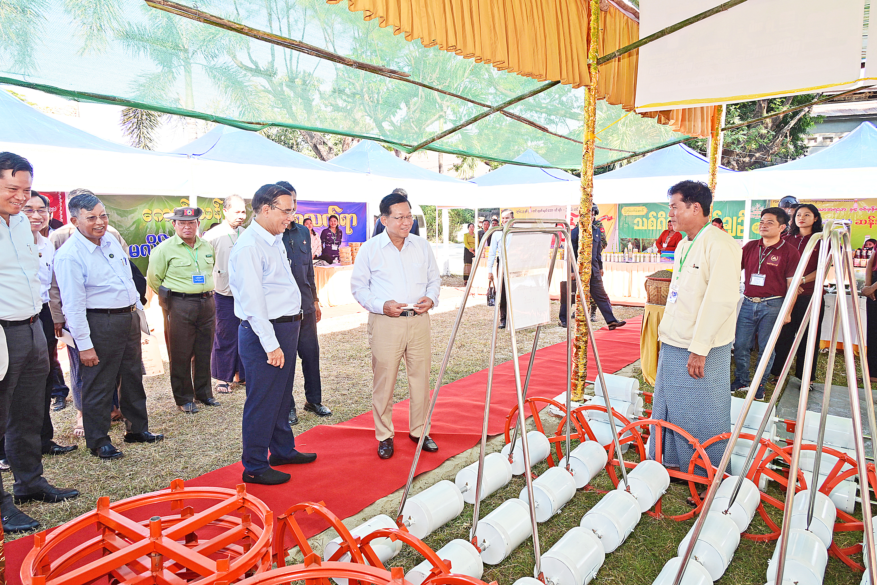 စိုက်ပျိုးရေးလုပ်ငန်းများ ဖွံ့ဖြိုးတိုးတက်ရေးနှင့်ပတ်သက်၍ တစ်ဧကပန်းတိုင် ရည်မှန်းချက်ပြည့်မီစွာ ထွက်ရှိစေရေးအတွက် စိုက်ပျိုးမွေးမြူရေးလုပ်ကိုင်နေကြသူ များကို မြေပြင်ကွင်းဆင်း၍ လိုအပ်ချက်များသုတေသနပြုမေးမြန်းခဲ့ပြီး လိုအပ်သည် များဖြည့်ဆည်းဆောင်ရွက်ပေးနိုင်ရန် စီမံဆောင်ရွက်လျက်ရှိကြောင်း၊ စိုက်ပျိုးရေးလုပ်ငန်းတွင် ပန်းတိုင်ရည်မှန်းချက်များပြည့်မီစွာဆောင်ရွက်နိုင်မည်ဆိုပါက အမေ ရိကန်ဒေါ်လာ ၈ ဘီလီယံခန့် ဝင်ငွေပိုမိုရရှိနိုင်မည်ဖြစ်ကြောင်း၊ စိုက်ပျိုးမွေးမြူရေး ထုတ်ကုန်များကို အခြေခံသည့် ပြည်တွင်းကုန်ထုတ်လုပ်မှုလုပ်ငန်းများ ဖွံ့ဖြိုးတိုးတက်လာခြင်းဖြင့် နိုင်ငံ့စီးပွားရေးအားကောင်းလာမည်ဖြစ်သကဲ့သို့ သွင်းကုန်ပစ္စည်းများကိုလည်း လျှော့ချနိုင်မည်ဖြစ်ကြောင်း၊ မိမိတို့အနေဖြင့် စက်သုံးဆီနှင့်စားသုံးဆီများကို ပြည်ပမှ နှစ်စဉ်တင်သွင်းနေရခြင်းကြောင့် နိုင်ငံခြားငွေများစွာသုံးစွဲနေရကြောင်း၊ ပြည်ခရိုင်အတွင်း စားသုံးဆီဆီဖူလုံမှုမှာ ၅၀၀ ရာခိုင်နှုန်းခန့်ရှိသည်ဟုသိရှိရပြီး ဆီထွက်သီးနှံများကို ယခုထက်ပိုမိုတိုးတက်အောင်မြင်စေရေး ကြိုးပမ်းဆောင်ရွက် သွားကြစေလိုကြောင်း။