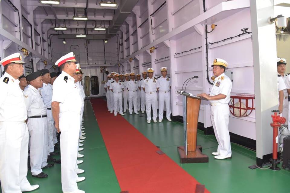 တပ္မေတာ္ကာကြယ္ေရးဦးစီးခ်ဳပ္ ဗိုလ္ခ်ဳပ္မွဴးႀကီး မင္းေအာင္လိႈင္သည္ ယေန႔မြန္းလြဲပိုင္းတြင္ ရန္ကုန္ၿမိဳ႕ရွိ အမွတ္(၃)ေရတပ္ဆိပ္ခံတံတား၌ က်င္းပျပဳလုပ္သည့္ ႏွစ္(၇၀)ျပည့္ တပ္မေတာ္(ေရ)ႏွစ္ပတ္လည္ေန႔ အထိမ္းအမွတ္ စစ္ေရယာဥ္မ်ား တပ္ေတာ္၀င္ျခင္းအခမ္းအနားသို႔ တပ္မေတာ္(ေရ)၀တ္စုံအား ဂုဏ္ျပဳ၀တ္ဆင္၍ တက္ေရာက္သည္။