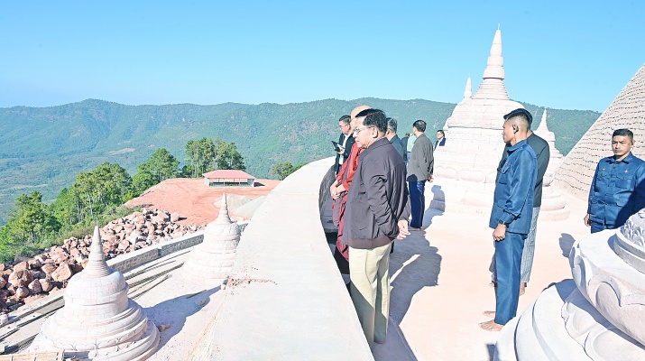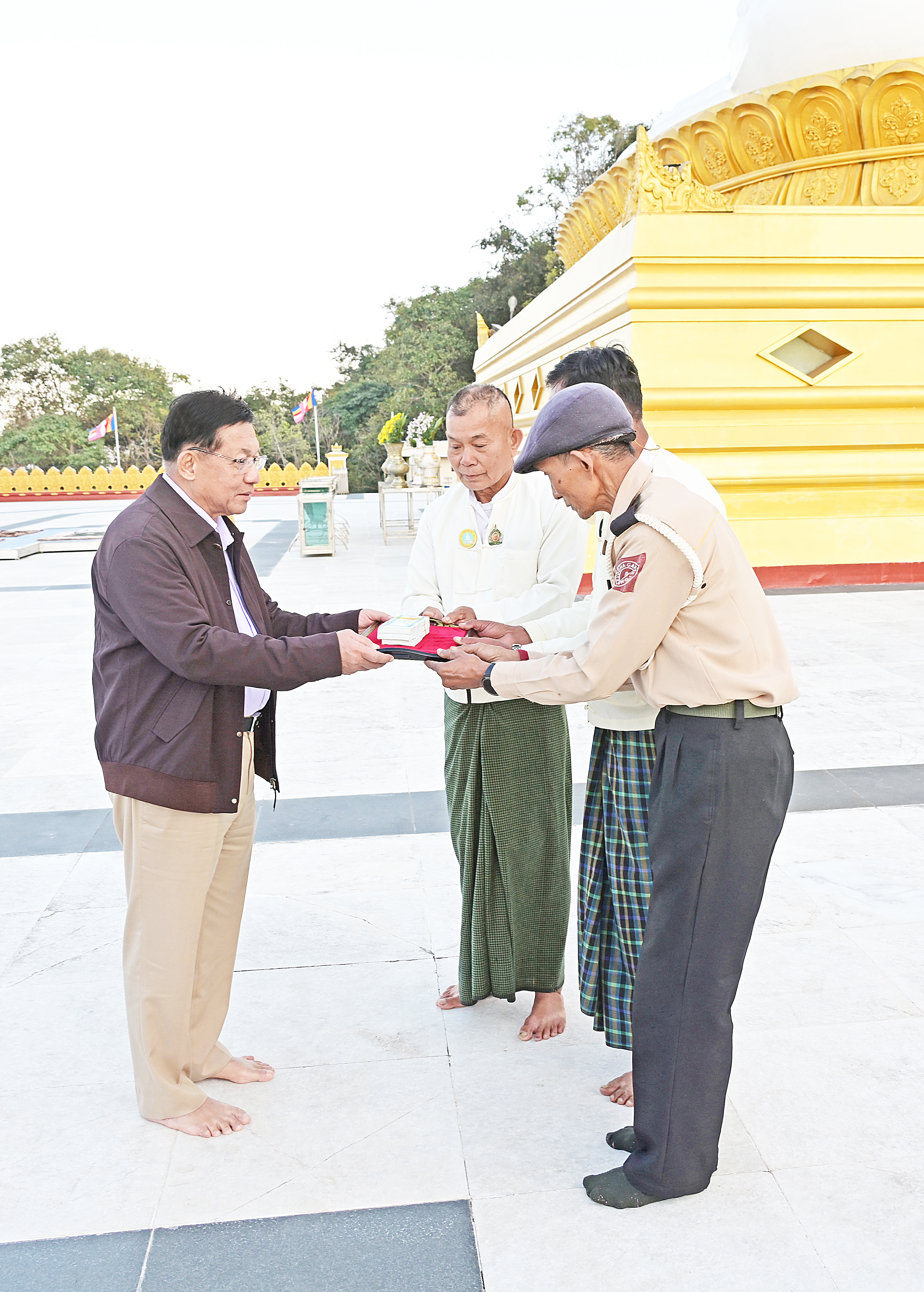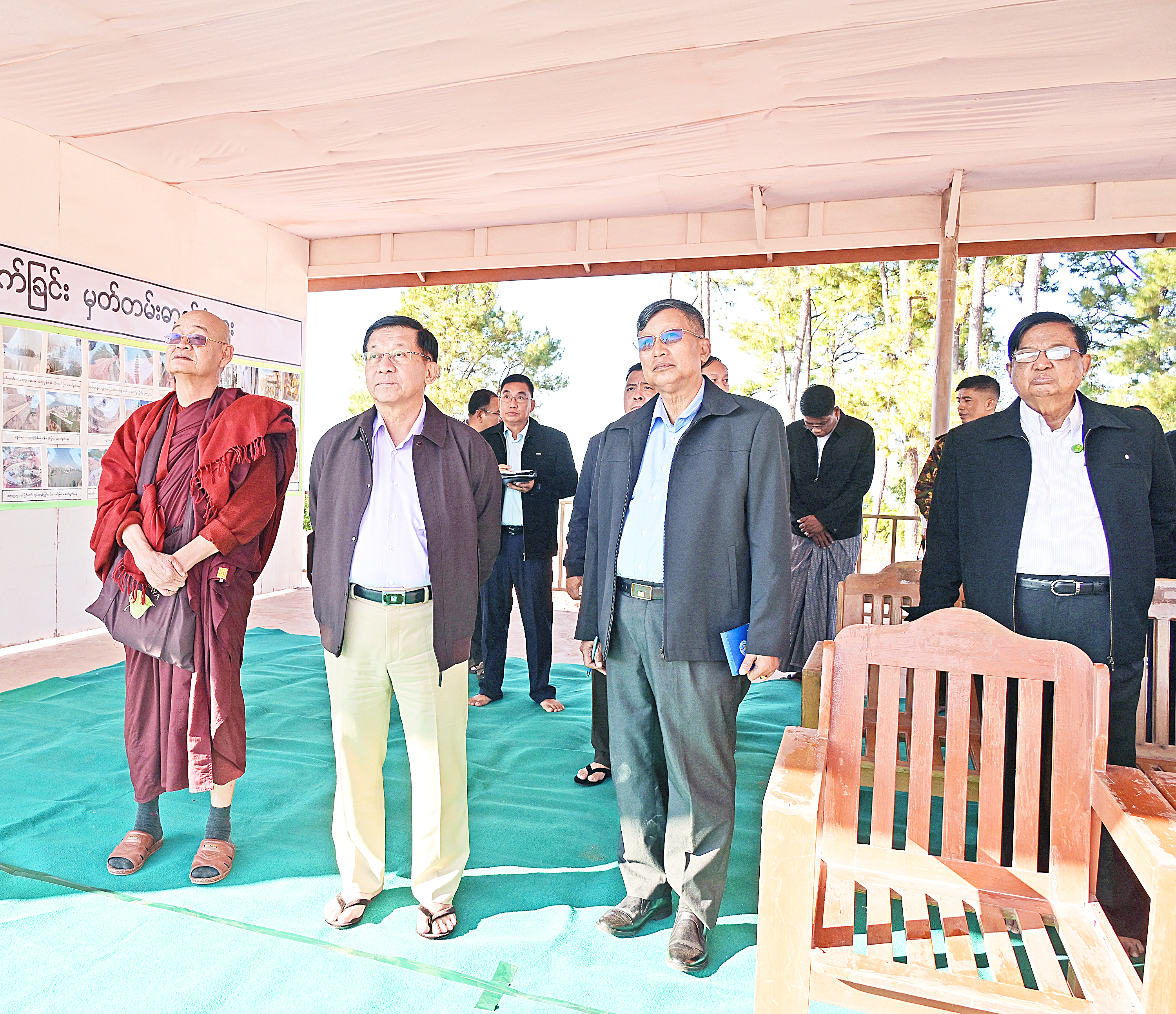 ထို့နောက် နိုင်ငံတော်ယာယီသမ္မတ နိုင်ငံတော်လုံခြုံရေးနှင့် အေးချမ်းသာယာရေး ကော်မရှင်ဥက္ကဋ္ဌသည် စေတီတော်ကြီးတည်ဆောက်ရေးလုပ်ငန်းခွင်အတွင်း လှည့်လည်ကြည့်ရှုပြီး လိုအပ်သည်များ လမ်းညွှန်မှာကြားသည်။