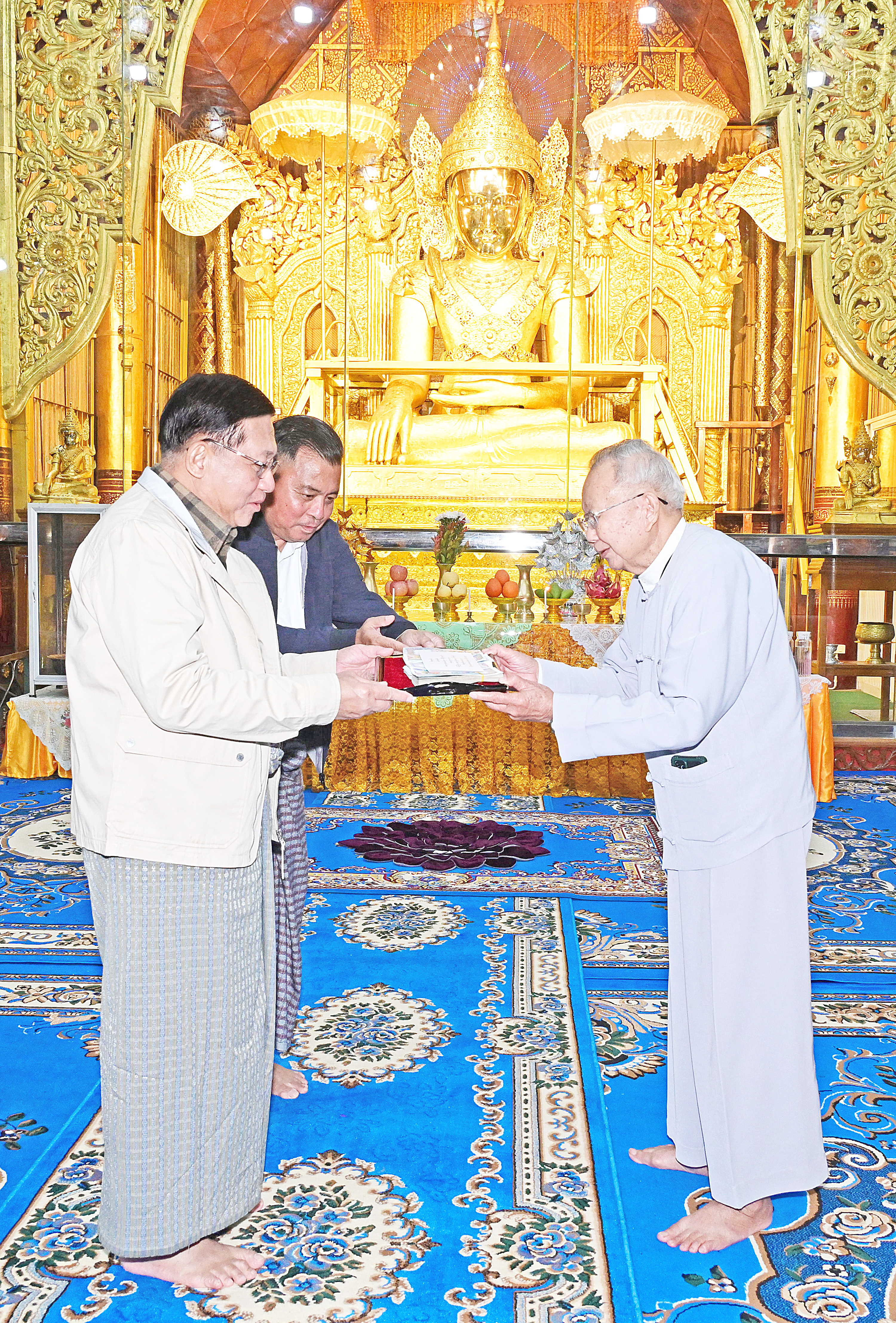 ယင်းနောက် နိုင်ငံတော်ယာယီသမ္မတ နိုင်ငံတော်လုံခြုံရေးနှင့် အေးချမ်းသာယာရေးကော်မရှင်ဥက္ကဋ္ဌက ဘုရားကြီးအတွက် ဘက်စုံအလှူတော်ငွေများကို ပေးအပ်လှူဒါန်းရာ ဂေါပကအဖွဲ့ဝင်များက လက်ခံရယူကြသည်။