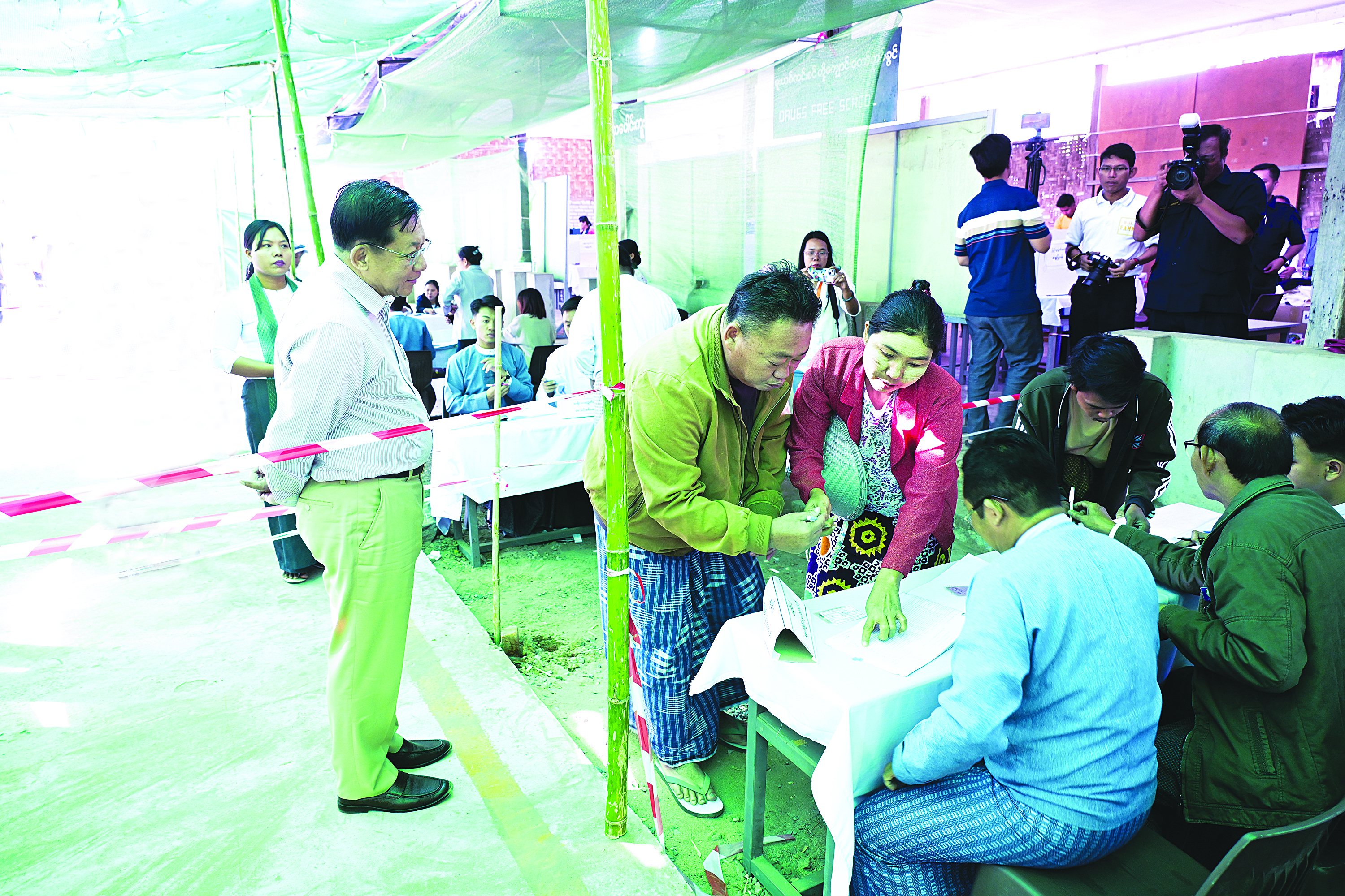 ထိုကဲ့သို့ မဲဆန္ဒရှင်ပြည်သူများ ဆန္ဒမဲများပေးနေမှုများကို နိုင်ငံတော်ယာယီသမ္မတ နိုင်ငံတော်လုံခြုံရေးနှင့် အေးချမ်းသာယာရေးကော်မရှင်ဥက္ကဋ္ဌ ဗိုလ်ချုပ်မှူးကြီးမင်းအောင်လှိုင်သည် ကော်မရှင်အတွင်းရေးမှူး ဗိုလ်ချုပ်ကြီး ရဲဝင်းဦးနှင့် အဖွဲ့ဝင်များလိုက်ပါ၍ မန္တလေးဒေသကြီးအတွင်းရှိ မဲရုံများသို့ သွားရောက်ကြည့်ရှုအားပေးသည်။