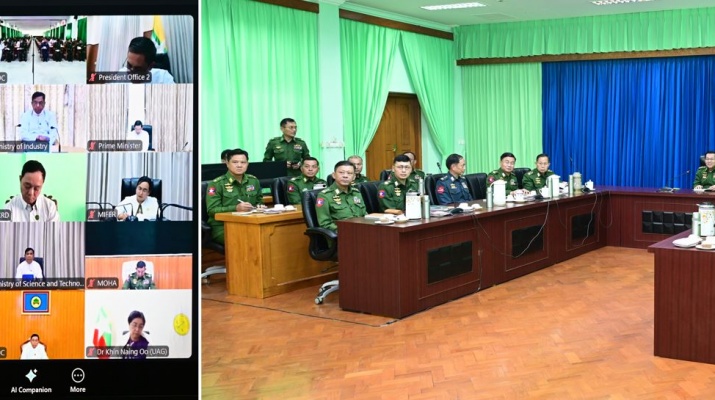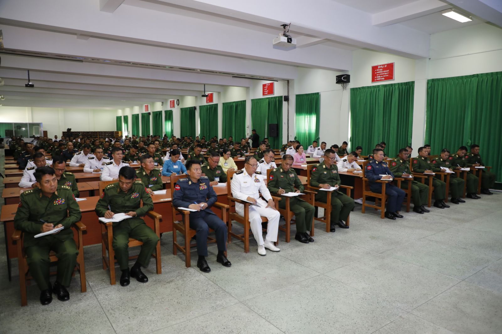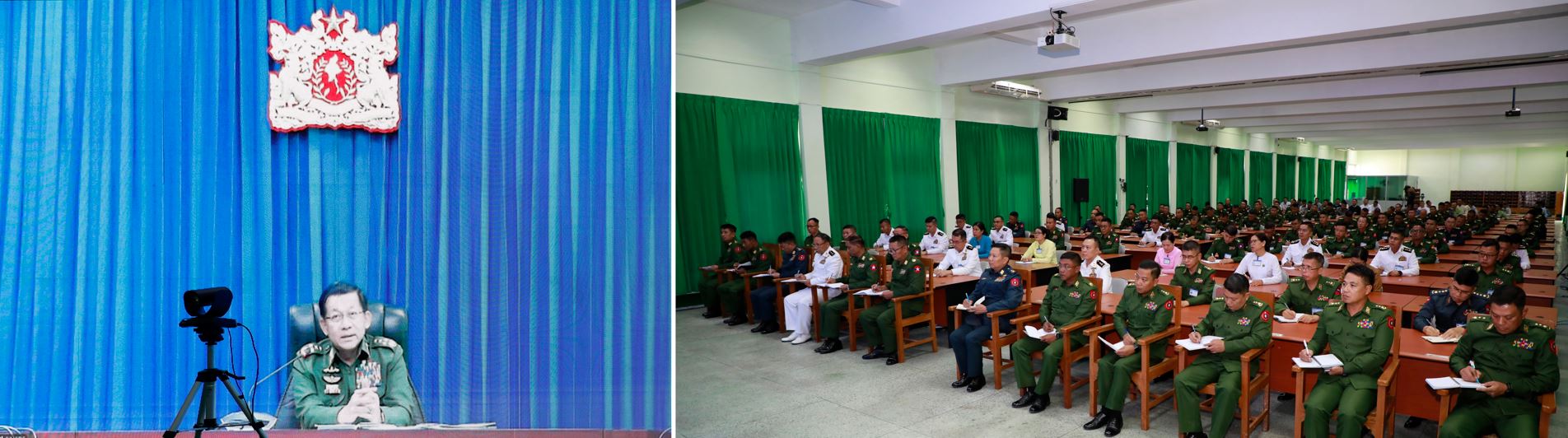 နိုင်ငံတော်လုံခြုံရေးနှင့်အေးချမ်းသာယာရေးကော်မရှင်ဥက္ကဋ္ဌ တပ်မတော်ကာကွယ်ရေးဦးစီးချုပ် ဗိုလ်ချုပ်မှူးကြီးမင်းအောင်လှိုင်သည် ယနေ့မွန်းလွဲပိုင်း တွင် နိုင်ငံတော်ကာကွယ်ရေးတက္ကသိုလ်မှ နည်းပြအရာရှိကြီးများနှင့် သင်တန်းသား အရာရှိကြီးများအား Video Conferencing ဖြင့် အမှာစကား ပြောကြားသည်။