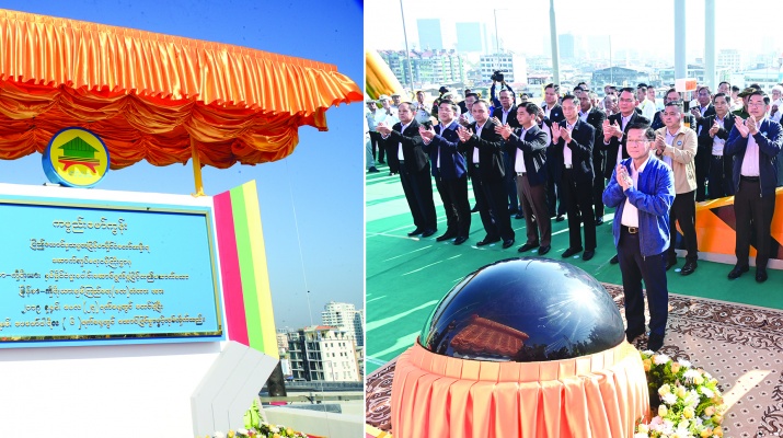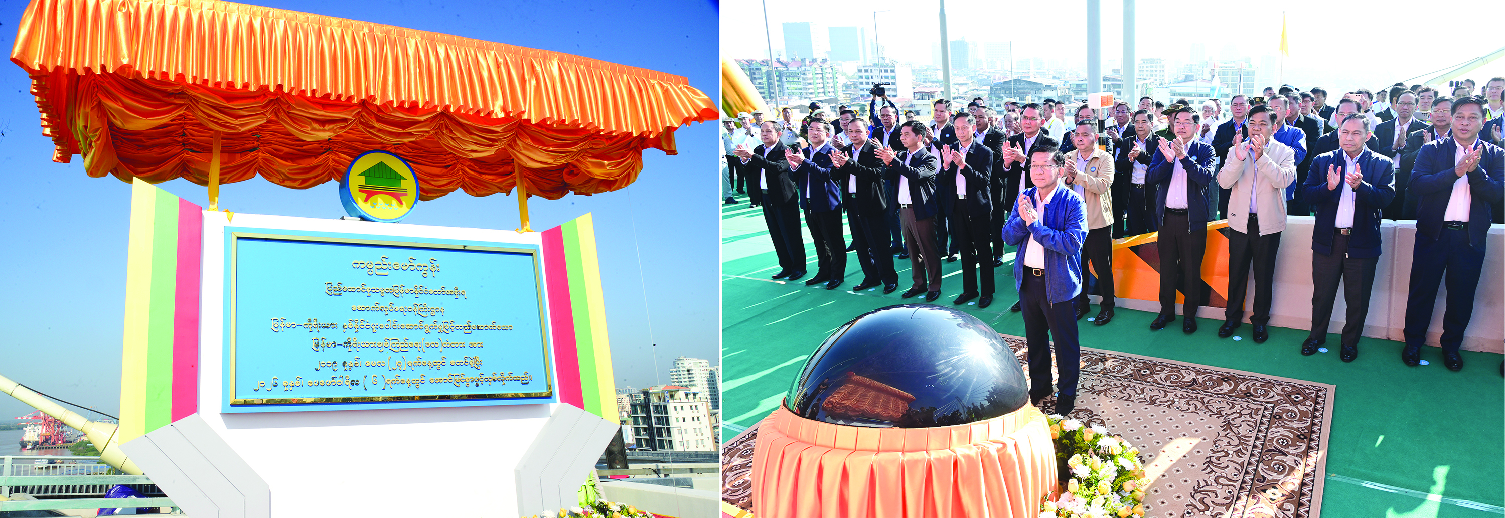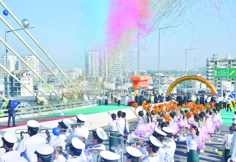 ရန်ကုန်တိုင်းဒေသကြီးအတွင်းရှိ မြန်မာ-ကိုရီးယား ချစ်ကြည်ရေး(ဒလ)တံတားဖွင့်ပွဲအခမ်းအနားကို ယနေ့နံနက်ပိုင်းတွင် ကျင်းပပြုလုပ်ရာ ပြည်ထောင်စုသမ္မတမြန်မာနိုင်ငံတော် ယာယီသမ္မတ နိုင်ငံတော်လုံခြုံရေးနှင့် အေးချမ်းသာယာရေးကော်မရှင်ဥက္ကဋ္ဌ ဗိုလ်ချုပ်မှူးကြီးမင်းအောင်လှိုင် တက်ရောက်ချီးမြှင့်သည်။