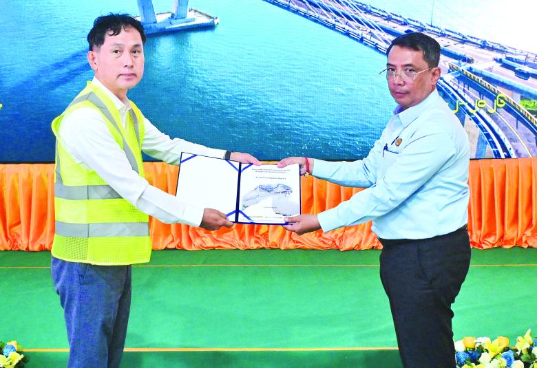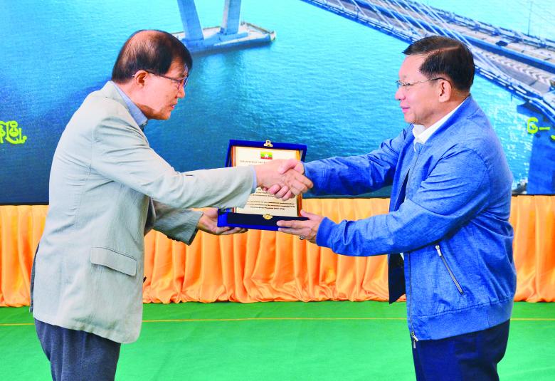 ထို့နောက် နိုင်ငံတော်ယာယီသမ္မတနိုင်ငံတော်လုံခြုံရေးနှင့်အေးချမ်းသာယာရေး ကော်မရှင်ဥက္ကဋ္ဌသည် တံတားတည်ဆောက်ရေးတွင် ပါဝင်ခဲ့ကြသည့်တည်ဆောက်ရေး အင်ဂျင်နီယာအဖွဲ့များအား အထိမ်းအမှတ်ဂုဏ်ပြုလက်ဆောင်ပစ္စည်းများပေးအပ်သည်။