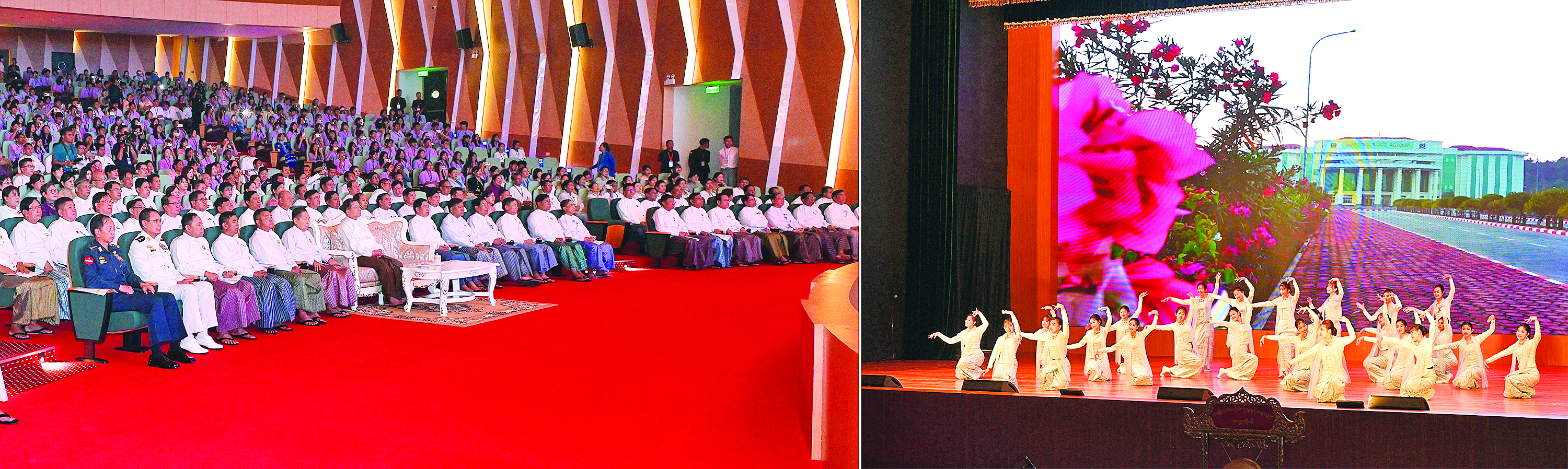 ထို့နောက် ပညာရေးဝန်ကြီးဌာန ပြည်ထောင်စုဝန်ကြီးက ကျေးဇူးတင်စကား ပြောကြားသည်။ ၎င်းနောက် သာသနာရေးနှင့် ယဉ်ကျေးမှုဝန်ကြီးဌာန၊ အနုပညာဦးစီးဌာန အမျိုးသားယဉ်ကျေးမှုနှင့် အနုပညာတက္ကသိုလ်(ရန်ကုန်)မှ ကျောင်းသား၊ ကျောင်းသူများ၊ အနုပညာဦးစီးဌာနမှ တေးသံရှင်များ၊ နိုင်ငံကျော်တေးသံရှင်များ၊ Naypyitaw State Academy မှ ကျောင်းသား၊ ကျောင်းသူများက တေးသီချင်းများ၊ သရုပ်ဖော်များ၊ ယိမ်းအကအလှများဖြင့် သီဆိုကပြဖျော်ဖြေတင်ဆက်ကြရာ နိုင်ငံတော် ယာယီသမ္မတ နိုင်ငံတော်လုံခြုံရေးနှင့် အေးချမ်းသာယာရေးကော်မရှင်ဥက္ကဋ္ဌနှင့်တက်ရောက်လာကြသူများက ကြည့်ရှုအားပေးကြသည်။