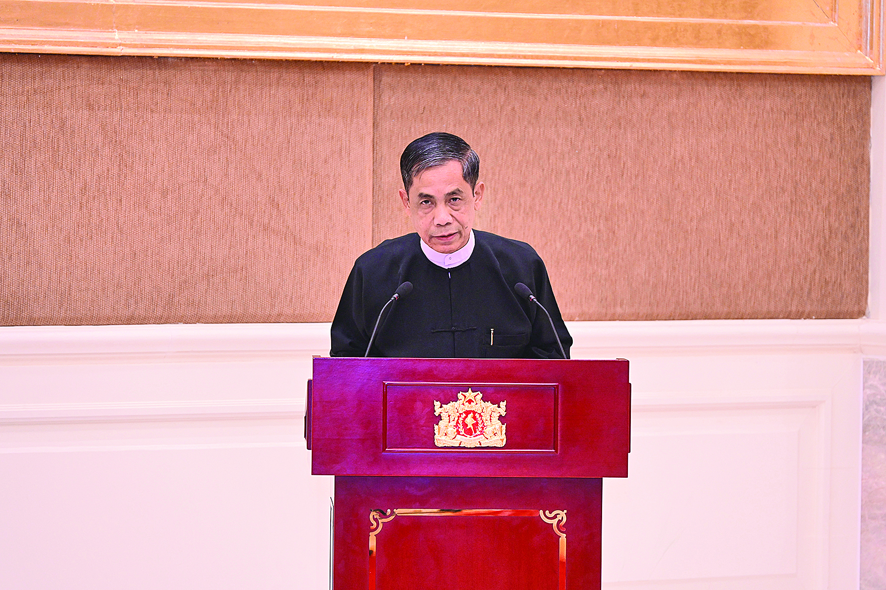 ဦးစွာ နိုင်ငံတော်ယာယီသမ္မတ နိုင်ငံတော်လုံခြုံရေးနှင့်အေးချမ်းသာယာ ရေးကော်မရှင်ဥက္ကဋ္ဌက ဂုဏ်ပြုအမှာစကားပြောကြားရာတွင် ယခုကျင်းပပြုလုပ်သည့် ဂုဏ်ပြုညစာစားပွဲတွင် အမှာစကားပြောကြားခွင့်ရသည့်အတွက် အထူးပင်ဝမ်းမြောက်မိကြောင်းကို ဦးစွာပြောကြားလိုကြောင်း၊ အပြည်ပြည်ဆိုင်ရာတရားရုံးတွင် ဂမ်ဘီယာနိုင်ငံက မြန်မာနိုင်ငံအပေါ် လူမျိုးသုဉ်းစေမှု Genocide ဖြင့် စွဲဆိုထားသည့်အမှုကို နောက်ဆုံးအပြန်အလှန် နှုတ်ဖြင့်လျှောက်လဲချက် ကြားနာစစ်ဆေးမှု Oral Hearing ၌ မြန်မာနိုင်ငံဘက်မှ သွားရောက်ရင်ဆိုင် လျှောက်လဲခဲ့ကြသည့် နိုင်ငံတော်သမ္မတရုံး ဝန်ကြီးဌာန(၂) ပြည်ထောင်စုဝန်ကြီး ဦးကိုကိုလှိုင်နှင့် ဥပဒေရေးရာဝန်ကြီးဌာန၊ ပြည်ထောင်စုဝန်ကြီးနှင့် ပြည်ထောင်စုရှေ့နေချုပ် ဒေါက်တာသီတာဦးတို့ ဦးဆောင်သည့် မြန်မာကိုယ်စားလှယ်အဖွဲ့ကို မြန်မာတစ်နိုင်ငံလုံးရှိ ပြည်သူလူထုက သောင်းသောင်းဖြဖြ ထောက်ခံအားပေး ဂုဏ်ပြုကြိုဆိုခဲ့ကြသည့်နည်းတူ နိုင်ငံတော် အစိုးရကလည်း နိုင်ငံတော်ကိုကိုယ်စားပြုပြီး ယခုကဲ့သို့ ဂုဏ်ပြုညစာစားပွဲဖြင့် ဂုဏ်ပြု ကြိုဆိုခြင်းပင်ဖြစ်ကြောင်း။