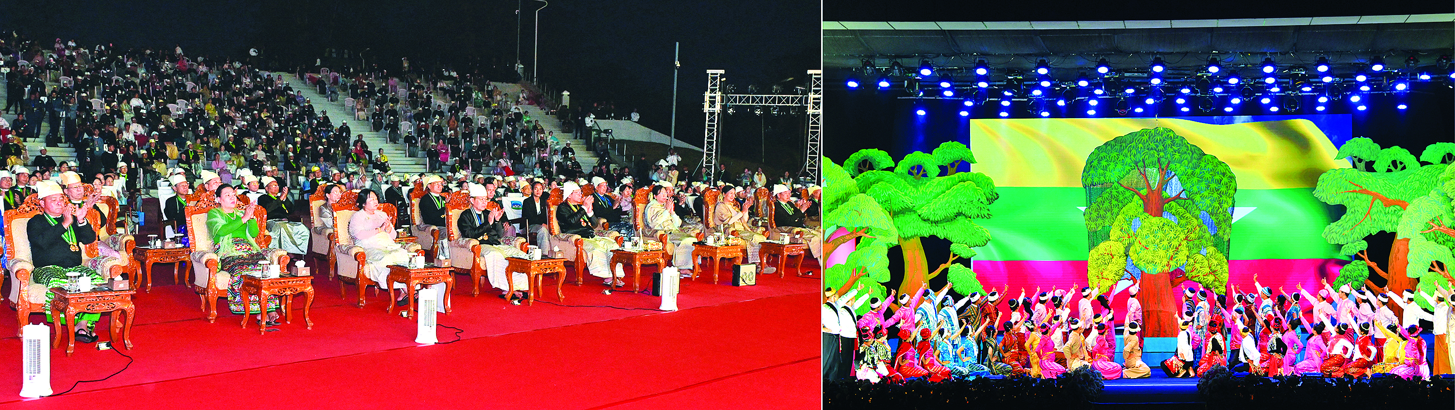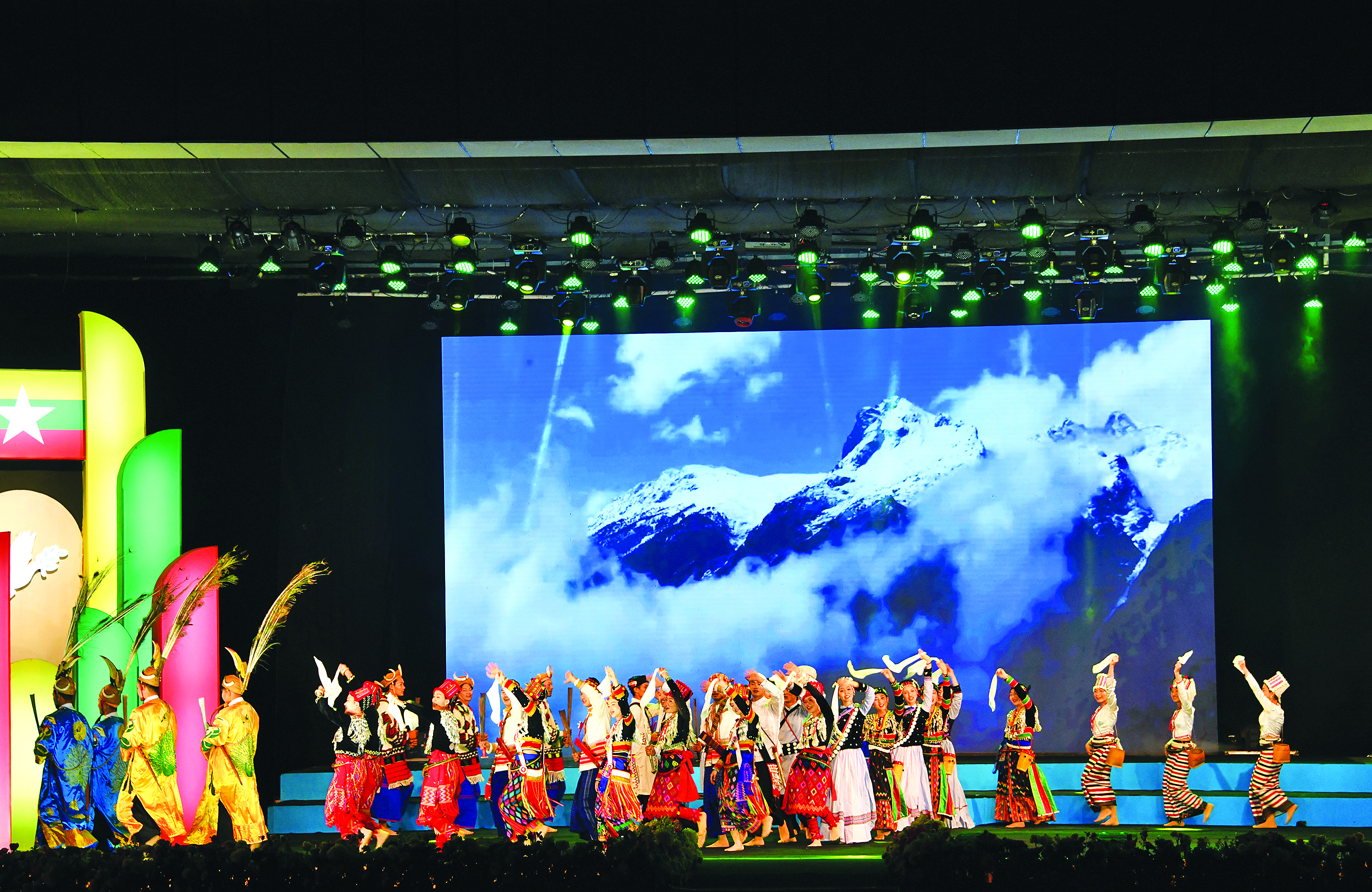 ထိုသို့ ဖျော်ဖြေတင်ဆက်ရာတွင် သာသနာရေးနှင့် ယဉ်ကျေးမှုဝန်ကြီးဌာန၊ အနုပညာ ဦးစီးဌာနမှ အနုပညာရှင်များက ပြည်ထောင်စုတေးသရုပ်ဖော်ဖြင့်လည်း ကောင်း၊ ကချင်တိုင်းရင်းသားရိုးရာအကအဖွဲ့၊ ကယားတိုင်းရင်းသားရိုးရာအကအဖွဲ့၊ ကရင်တိုင်း ရင်းသားရိုးရာအကအဖွဲ့၊ ချင်း တိုင်းရင်းသားရိုးရာ အကအဖွဲ့၊ မကွေးတိုင်း ဒေသကြီး ဗမာတိုင်းရင်းသားရိုးရာအကအဖွဲ့၊ မွန်တိုင်းရင်းသားရိုးရာအကအဖွဲ့၊ ရခိုင် တိုင်းရင်းသား ရိုးရာအကအဖွဲ့၊ ရှမ်းတိုင်းရင်း သားရိုးရာအကအဖွဲ့တို့က တိုင်းရင်းသားရိုးရာ တေးသီချင်းများ၊ တေးသရုပ်ဖော်များဖြင့် လည်းကောင်း၊ သာသနာရေးနှင့်ယဉ်ကျေးမှု ဝန်ကြီးဌာန အနုပညာဦးစီးဌာနမှ အနုပညာရှင်များနှင့် တိုင်းရင်းသားရိုးရာယဉ်ကျေးမှု အဖွဲ့များက “ မွှေးရနံ့စုံလင် ပြည်ထောင်စုသဘင်” တေးသီချင်းဖြင့်လည်းကောင်း အသီးသီးဖျော်ဖြေတင်ဆက်ကြသည်။