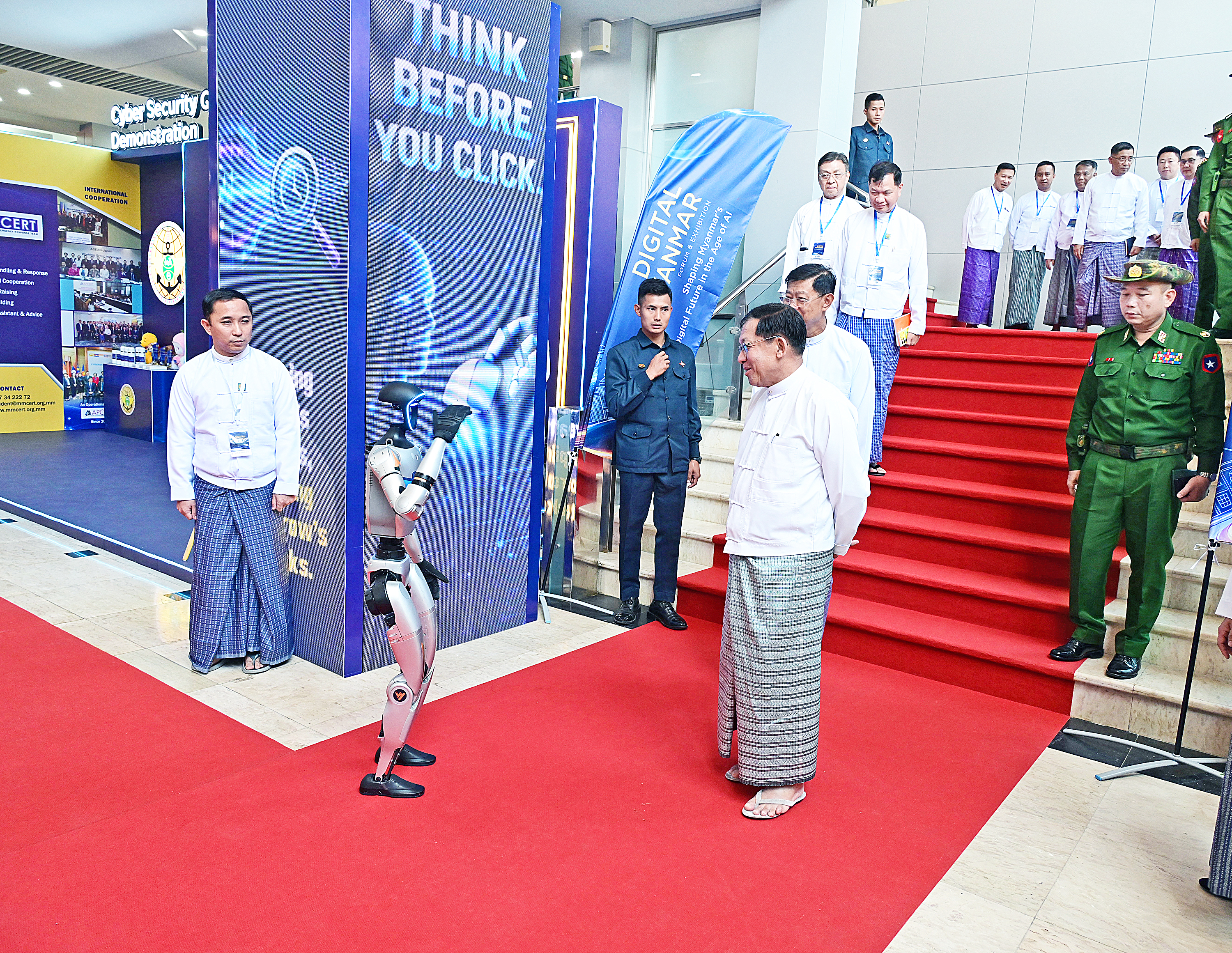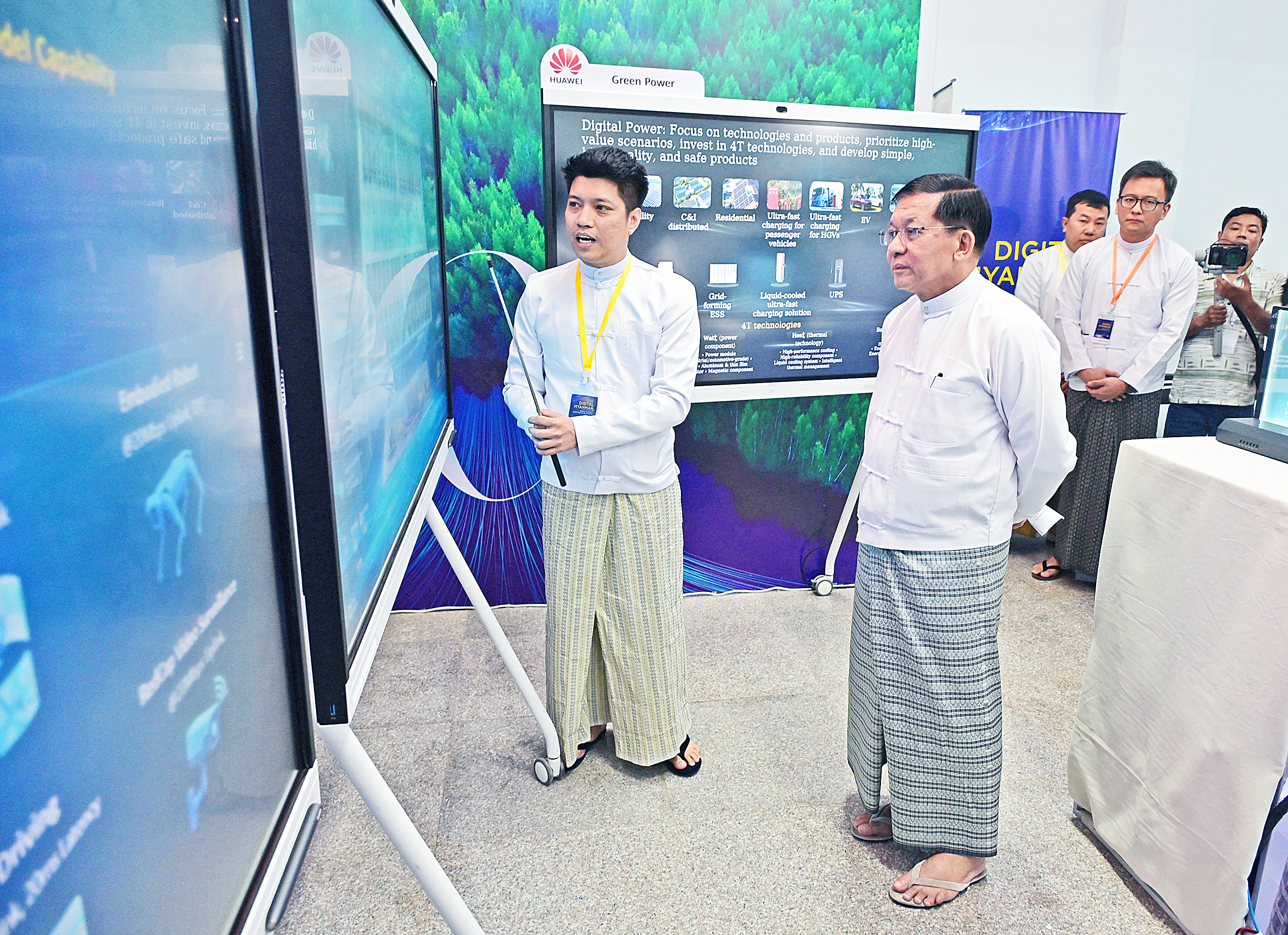 ယင်းနောက် နိုင်ငံတော်ယာယီသမ္မတ နိုင်ငံတော်လုံခြုံရေးနှင့်အေးချမ်းသာယာ ရေးကော် မရှင်ဥက္ကဋ္ဌက ဒစ်ဂျစ်တယ်မြန်မာ နည်းပညာနှီးနှောဖလှယ်ပွဲနှင့် ပြပွဲအခမ်း အနားကို စက်ခလုတ်နှိပ်ဖွင့်လှစ်ပေးသည်။