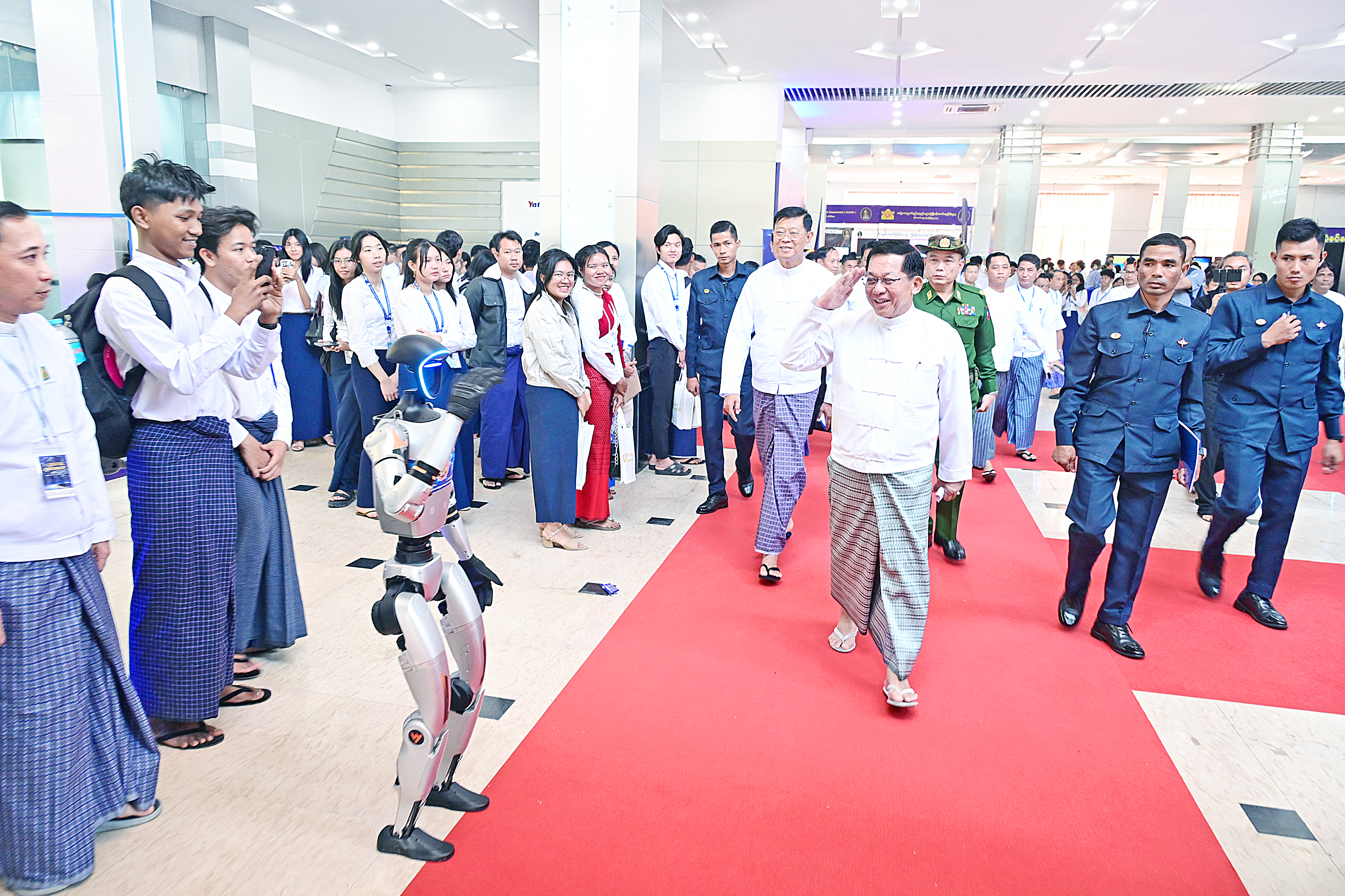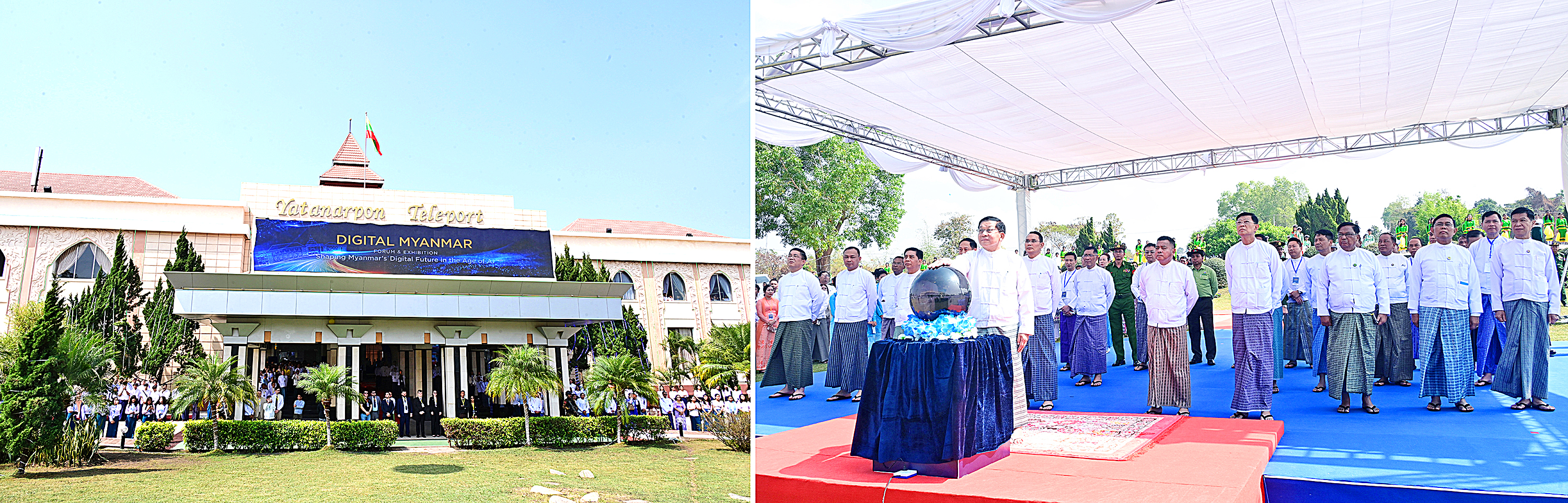 ဒစ်ဂျစ်တယ်မြန်မာနည်းပညာနှီးနှောဖလှယ်ပွဲနှင့် ပြပွဲအခမ်းအနားကို ယနေ့ နေ့လယ်ပိုင်း တွင် ပြင်ဦးလွင်မြို့၊ ရတနာပုံမြို့သစ်စီမံကိန်းရှိ ရတနာပုံတယ်လီပို့ အဆောက်အဦ၌ ကျင်းပပြုလုပ်ရာ ပြည်ထောင်စုသမ္မတမြန်မာနိုင်ငံတော် ယာယီ သမ္မတ နိုင်ငံတော် လုံခြုံရေးနှင့်အေးချမ်းသာယာရေးကော်မရှင်ဥက္ကဋ္ဌ ဗိုလ်ချုပ်မှူးကြီး မင်းအောင်လှိုင် တက်ရောက်ဖွင့်လှစ်ပေးပြီး အမှာစကားပြောကြားသည်။
