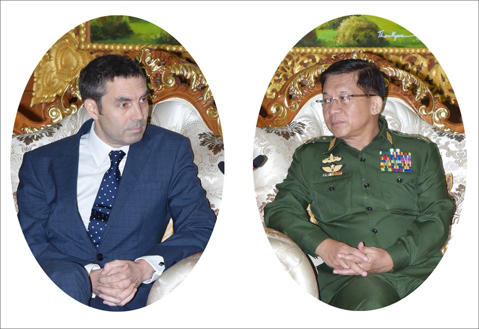 တပ်မတော်ကာကွယ်ရေးဦးစီးချုပ် ဗိုလ်ချုပ်မှူးကြီး မင်းအောင်လှိုင် မြန်မာနိုင်ငံဆိုင်ရာ ဗြိတိန်နိုင်ငံသံ အမတ်ကြီးH. E. Mr. Daniel Patrick Chugg အားလက်ခံတွေ့ဆုံ