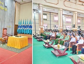 ဦးစြာ စက္႐ုံအစည္းအေ၀းခန္းမ၌ တပ္မွဴးက အသံလႊင့္လုပ္ငန္းမ်ားအား သက္ဆုိင္ရာက႑မ်ားအလုိက္ ထုတ္လႊင့္ေဆာင္ရြက္ေနမႈ အေျခအေနမ်ားႏွင့္ ႏုိင္ငံ အႏွံ႕မွဖမ္းယူရရွိေရးအတြက္ ထပ္ဆင့္လႊင့္စက္႐ုံမ်ားထပ္မံတုိးခ်ဲ႕တည္ေဆာက္ေနမႈ အေျခအေနမ်ား၊ တပ္မိသားစုမ်ားသက္သာေခ်ာင္ခ်ိေရး ေဆာင္ရြက္ထားရွိမႈအေျခအေန မ်ားအားရွင္းလင္းတင္ျပသည္။