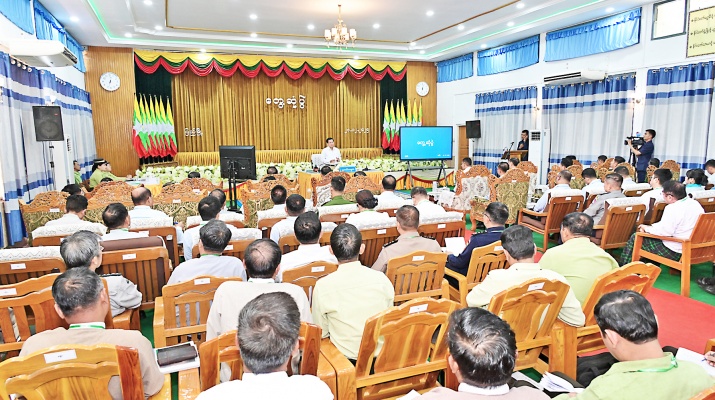 Acting President of the Republic of the Union of Myanmar, Chairman of State Security and Peace Commission, Senior General Min Aung Hlaing meets with departmental officials, local elders, and MSME entrepreneurs from Pyay District