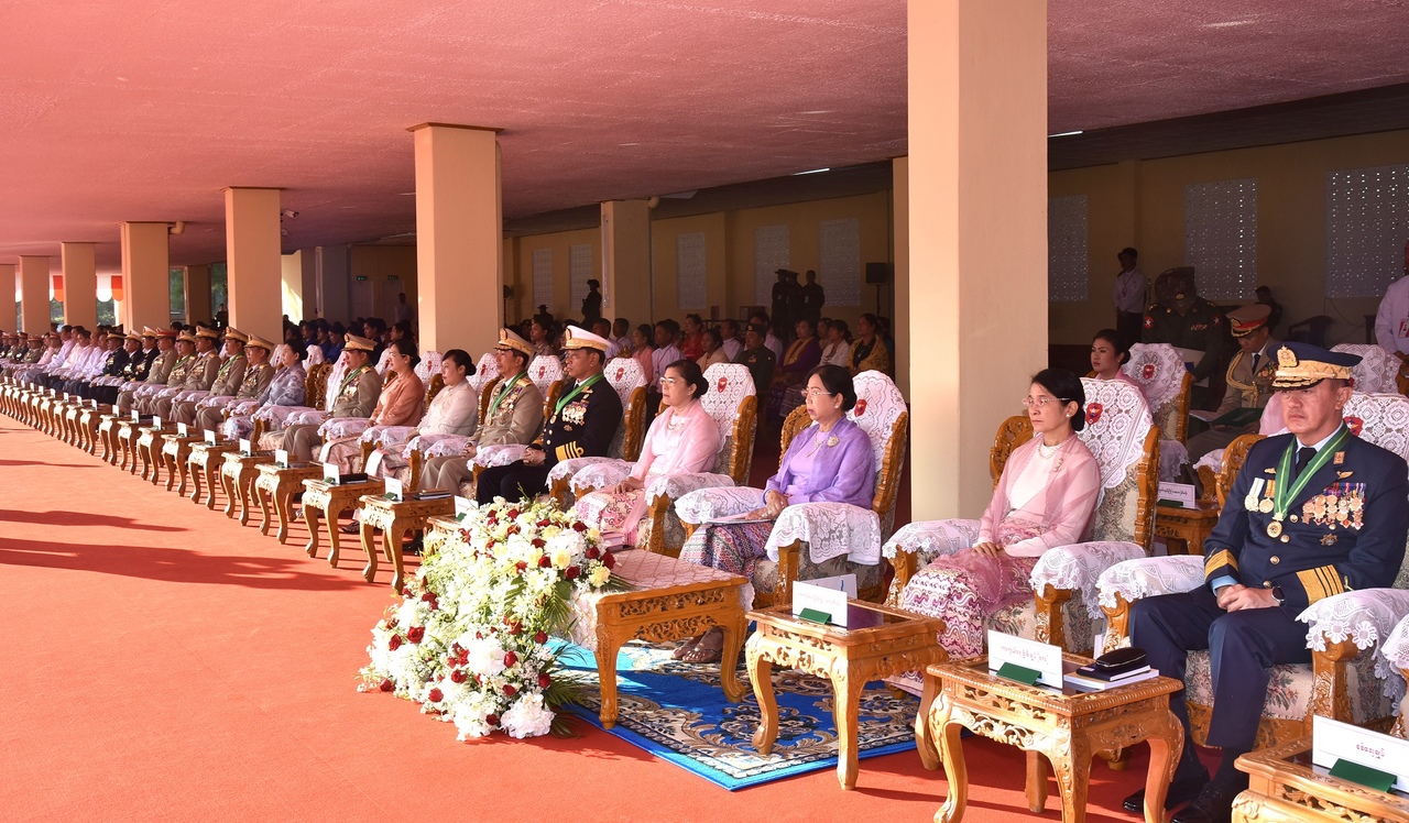 Also present were wife of the Senior General, Daw Kyu Kyu Hla, Commander-in-Chief (Navy) Admiral Zeya Kyawhtin Tin Aung San, Commander-in-Chief (Air)General Zeya Kyawhtin Maung Maung Kyaw,senior military officers from the Office of the Commander-in-Chief, the commander of Yangon Command, the commandant of the DSINPS, senior offi cers of Yangon Station,invited persons and parents and relatives of the trainees.