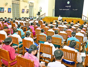 The remains of the Sayadaw are placed at the monastery. Led by Leading Patron of Thila Dhamma Kontha Tawya Monastery (Wasipeik) Sayadaw Bhaddanta Kovida, Commander-in-Chief of Defence Services Senior General Min Aung Hlaing and wife Daw Kyu Kyu Hla and party paid respects to the Sayadaw’s remains. First, the Senior General wrote in the book of condolences, expressing deep regret for the loss of the Sayadaw. He also stated that the demise of the Sayadaw is a great loss for the religion not only for Tachilek region, but also for the Shan State and the nation. In expressing his condolences, the Senior General also promised to embrace and safeguard the religion in recognition of the efforts for protection and conservation of the Sasana.