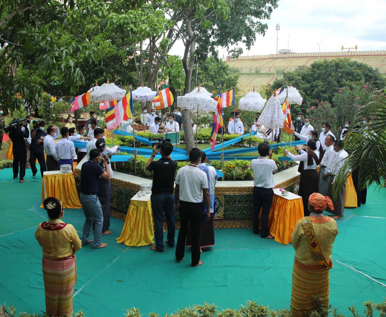 The 13th Maha Mingalar ceremony of pouring water at banyan trees in the month of Kason involved in the 12 seasonal festivals of Buddhist Myanmar, which falls on the fullmoon day of Kason, 1383 ME, also called the Buddha’s Day, took place at Maha Bodhi banyan trees in the northward in the precinct of Upattasanti Pagoda in Nay Pyi Taw this afternoon. Chairman of the State Administration Council Commander-in-Chief of Defence Services Senior General Min Aung Hlaing and wife Daw Kyu Kyu Hla watered Maha Bodhibanyan trees.