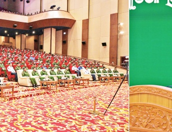 Also present at the meeting together with the Senior General were SAC Joint Secretary Lt-Gen Ye Win Oo, Union ministers U Win Shein, U Aung Naing Oo, U Tin Htut Oo, U Hla Moe, Dr Charlie Than, Dr Kan Zaw, Yangon Region Chief Minister U Soe Thein, Chief of General Staff (Army, Navy and Air) General Maung Maung Aye, senior military officers from the Office of the Commander-in-Chief, the Yangon Command commander, officials, members of region government, members of UMFCCI and associates, and MSME entrepreneurs.