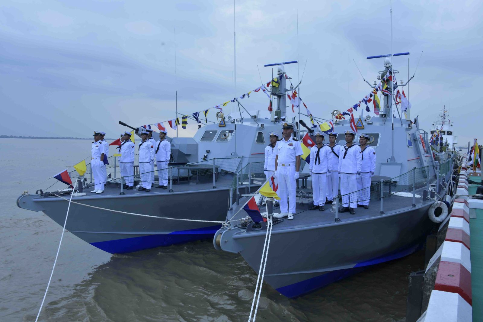 Chief of Staff (Navy) Vice-Admiral Zwe Win Myint explained the salient points of the warships that would be commissioned. The commandant of Naval Shipyards transferred the related papers of the ships to the strategic fleet commander, and Panpawady Naval Base commander, the related papers of war ships to be transferred to Myanmar Coastguard to its director general.