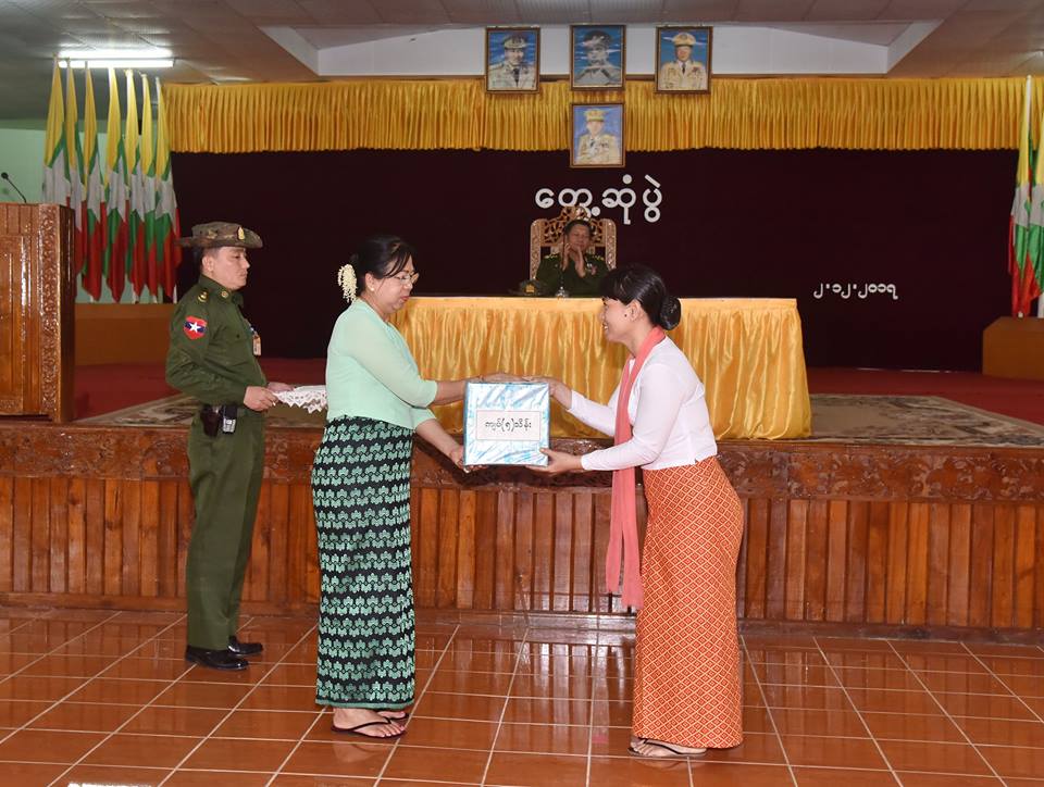 In the afternoon, the Senior General met with officers and other ranks and their families at Sittway Station. It was attended by Daw Kyu Kyu Hla, wife of the Senior General, Commander-in-Chief (Navy) Admiral Tin Aung San, Commander-in-Chief (Air) General Khin Aung Myint and senior military officers from the Office of the Commander-in-Chief (Army), the Western Command Commander and officers, other ranks and their families from Sittway Station.