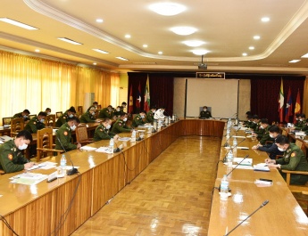 For local peace, the NCA was signed with ethnic armed groups. The peace-making process had to face difficulties as some ethnic armed groups wanted to get more rights. All were to be on the multiparty democracy path in accord with the law. The Constitution guaranteed the same rights for ethnic groups. Servicemen had to sacrifice their life for the perpetuation of sovereignty. We needed to conserve cultural heritage. Servicemen need to be equipped with three capabilities—military, organizing and administration.