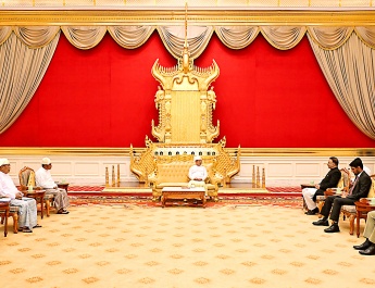 Next, the Senior General and party enjoyed the performances staged by the country’s famous vocalists and the Myanmar cultural troupe to the accompaniment of the State Orchestra.