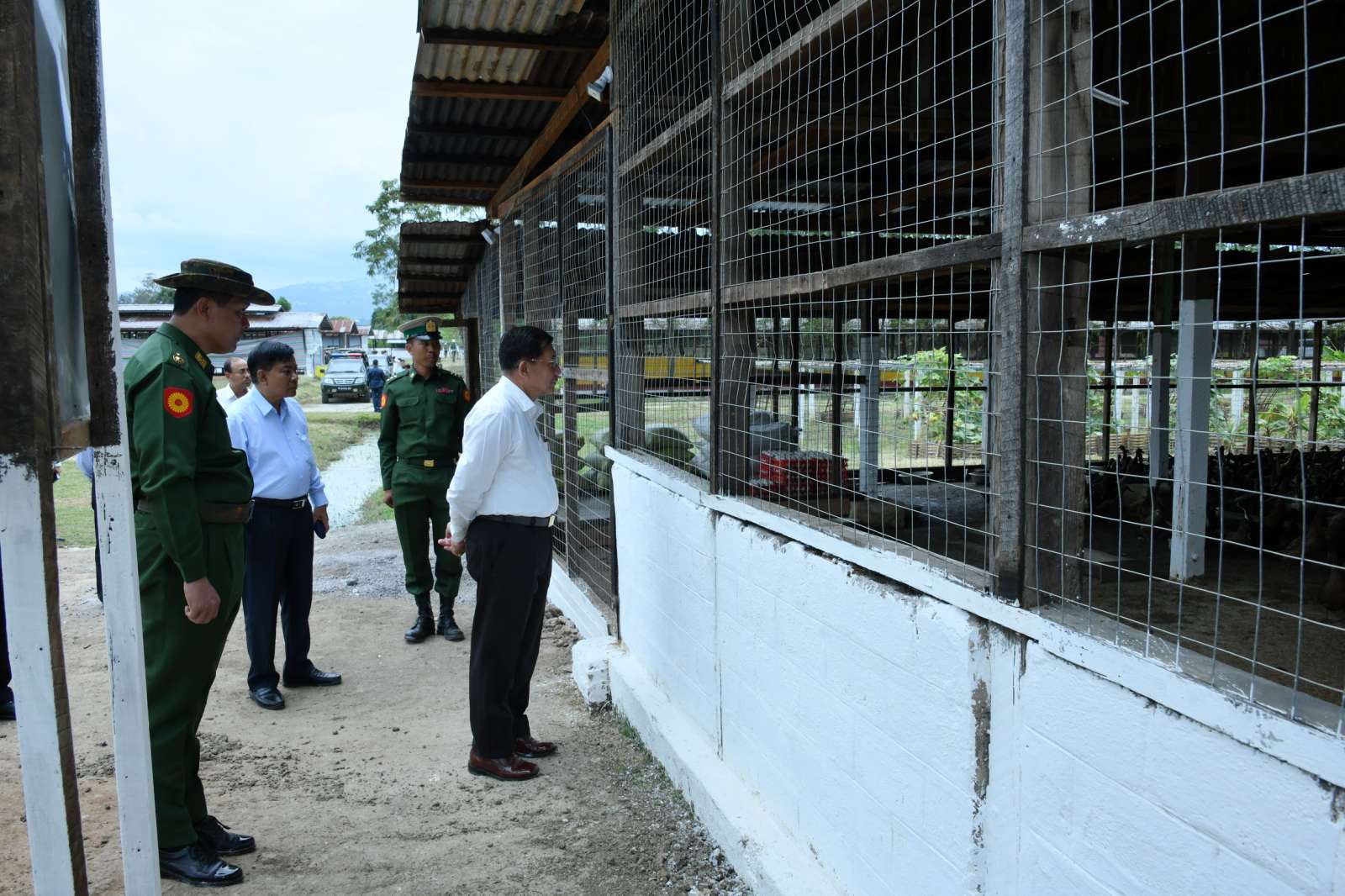 Then, the Senior General and party inspected agriculture and livestock breeding tasks of the Nanthida Multi-purpose Agriculture and Livestock Breeding Farm-1 and -2 including breeding of pigs, ducks, cows and layers and responsible officers reported to the Senior General on tasks being carried out.