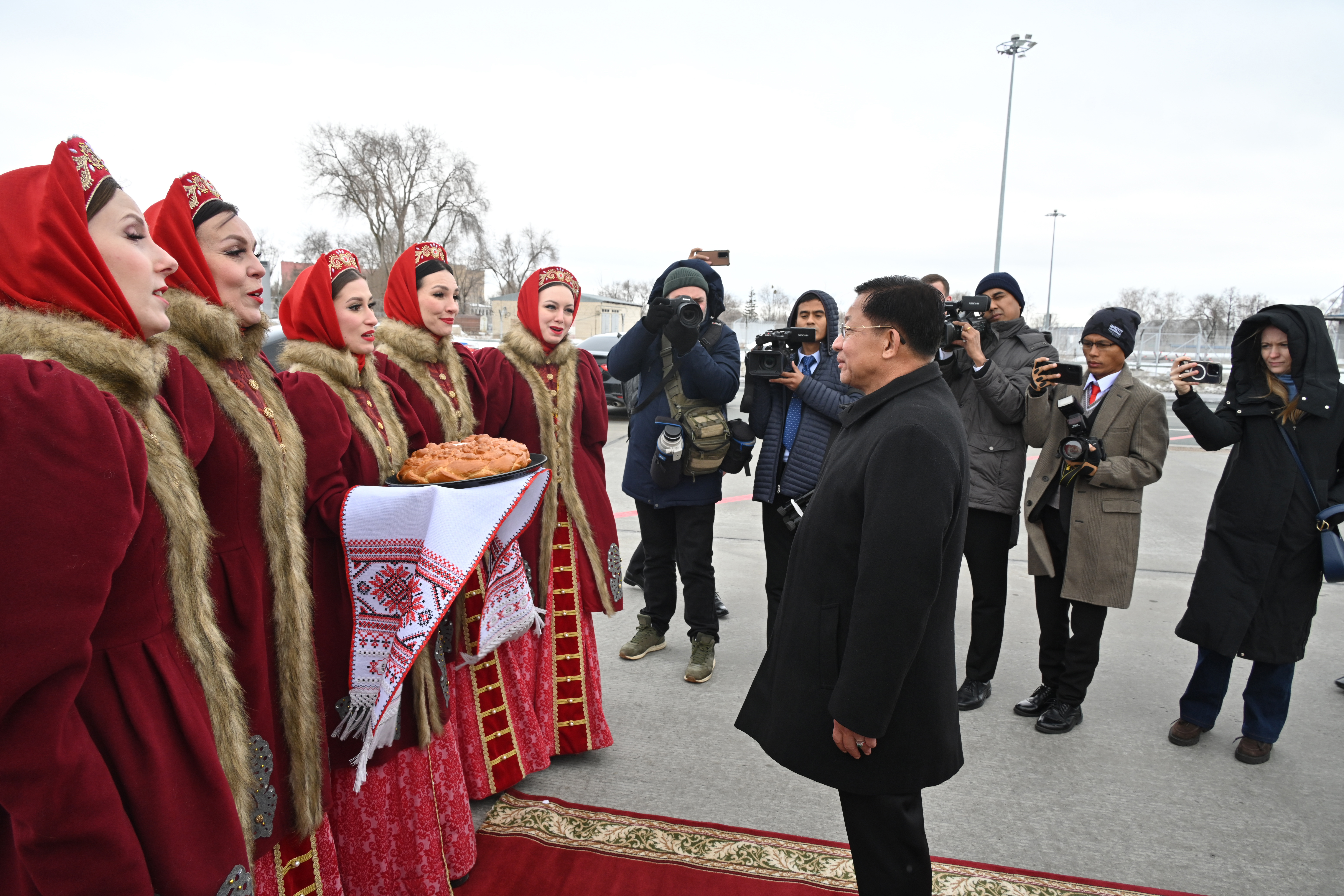 Later, the goodwill delegation, led by the Chairman of the State Administration Council Prime Minister, departed from Kurumoch International Airport in Samara and arrived at Tolmachevo Airport in Novosibirsk in the evening, local time. They were welcomed at the airport with the Guard of Honour and by the Head of the Novosibirsk Regional Government, the Consul General of Myanmar, and other officials.