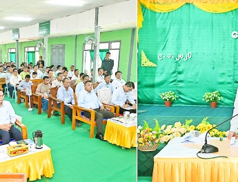 At the end of the meeting, Daw Kyu Kyu Hla and the Spea-ker of the Federation Council exchanged commemorative gifts and posed for a group photo with attendees.