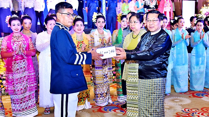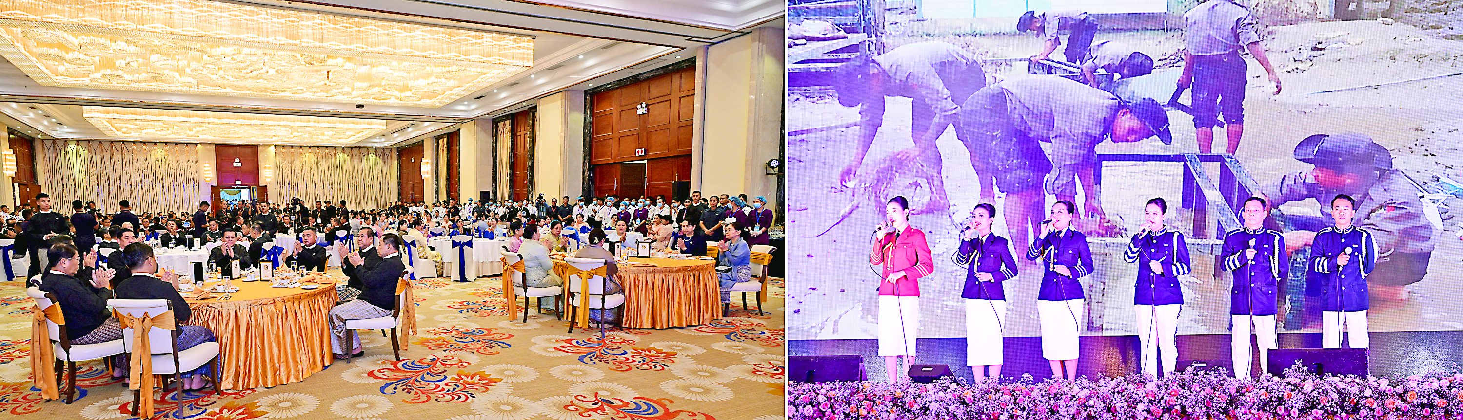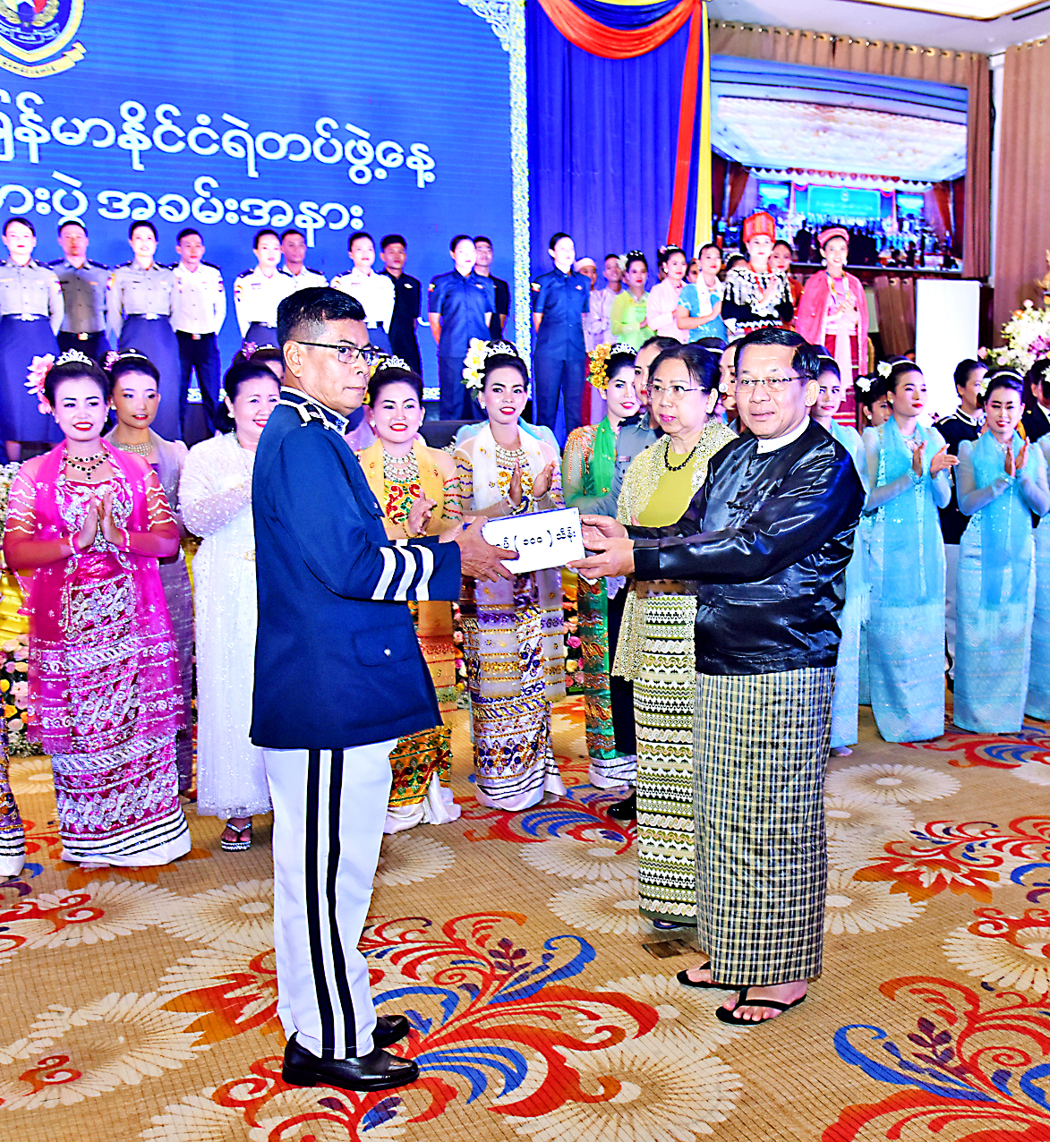 Members of police musical band and entertainment division of MPF, artists of Fine Arts Department of the Ministry of Religious Affairs and Culture, and artists of Myawady musical band under the command of Directorate of Public Relations and Psychological Warfare entertained the guests with songs before and during the dinner.