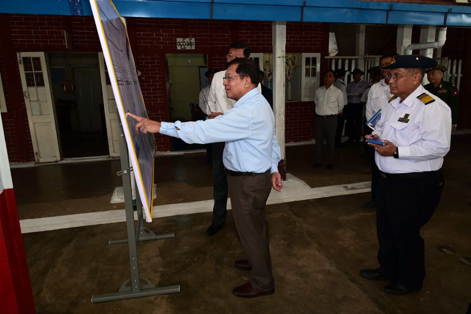 Acting President of the Re-public of the Union of Myanmar, Chairman of State Security and Peace Commission of the Republic of the Union of Myanmar, Senior General Min Aung Hlaing, accompanied by SSPC Secretary Joint Executive Chief General Ye Win Oo, SSPC members, union ministers, senior military officers from the Office of the Commander-in-Chief and officials, inspected PyinOoLwin railway station this evening.