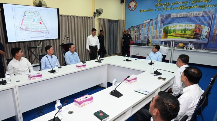 Following the briefing, the Senior General explained that the new advanced market is intended to be a standard market that aligns with PyinOoLwin’s increasing population and tourism, and to centralize the availability of local and basic consumer goods. He instructed them to monitor the work to ensure the market meets the standards suitable for urban development. Furthermore, he emphasized that once construction is complete, strict attention must be paid to the systematic arrangement of market stalls, prioritizing cleanliness, and ensuring proper water and electricity systems, before providing other necessary guidance.