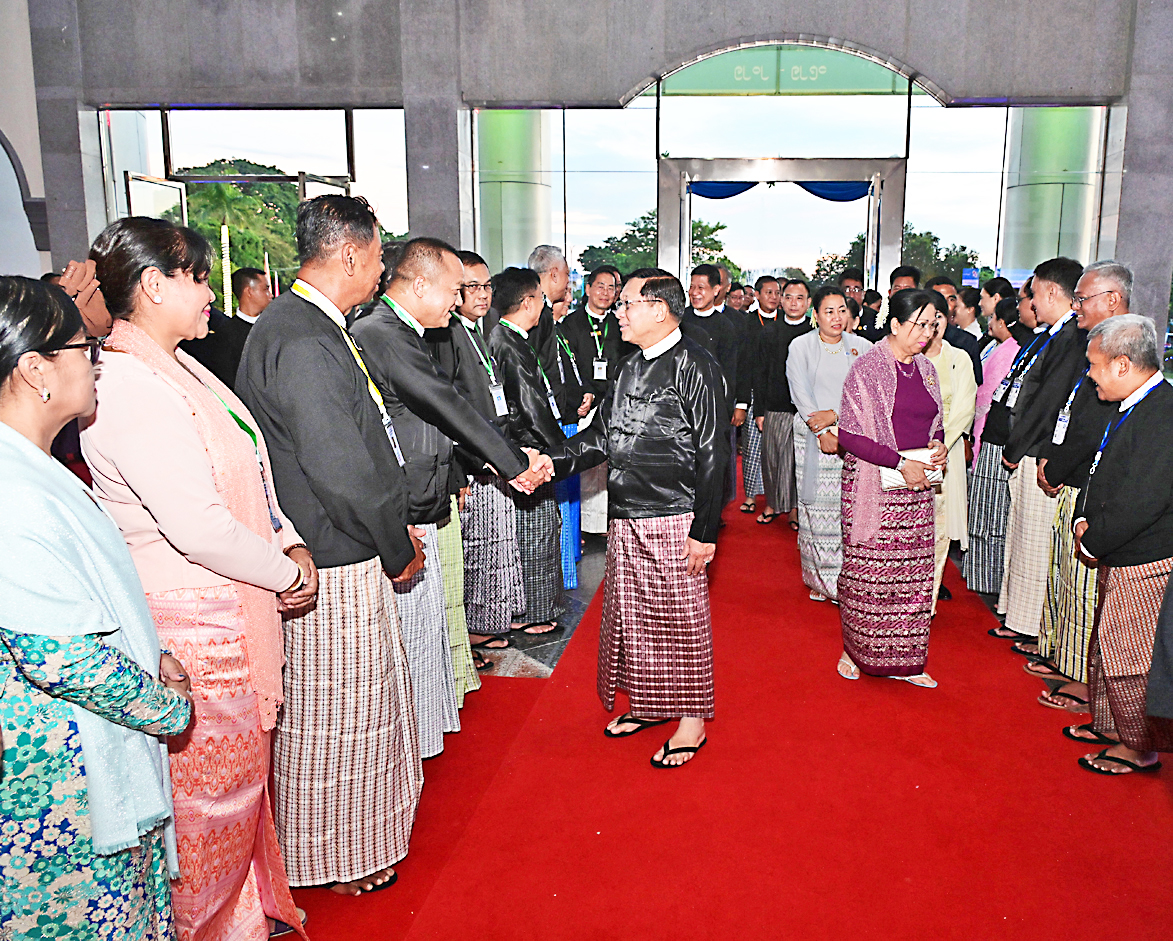 Attending the honorary dinner together with the Senior General were his wife Daw Kyu Kyu Hla, Commission Secretary Joint Executive Chief General Ye Win Oo and his wife, Commission member Lt-Gen Yar Pyae and his wife, Union Ministers and their wives, the Chief Minister of Mandalay Region, senior military officers from the Office of the Commander-in-Chief and their wives, academics, rectors, prorectors, faculty members, town elders, current students and alumni.