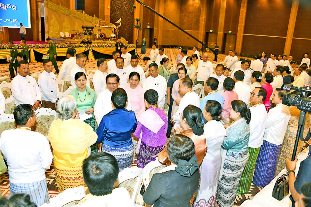 After the ceremony, Acting President and SSPC Chairman of the Republic of the Union of Myanmar Senior General Min Aung Hlaing and his wife Daw Kyu Kyu Hla and party cordially greeted maestros.