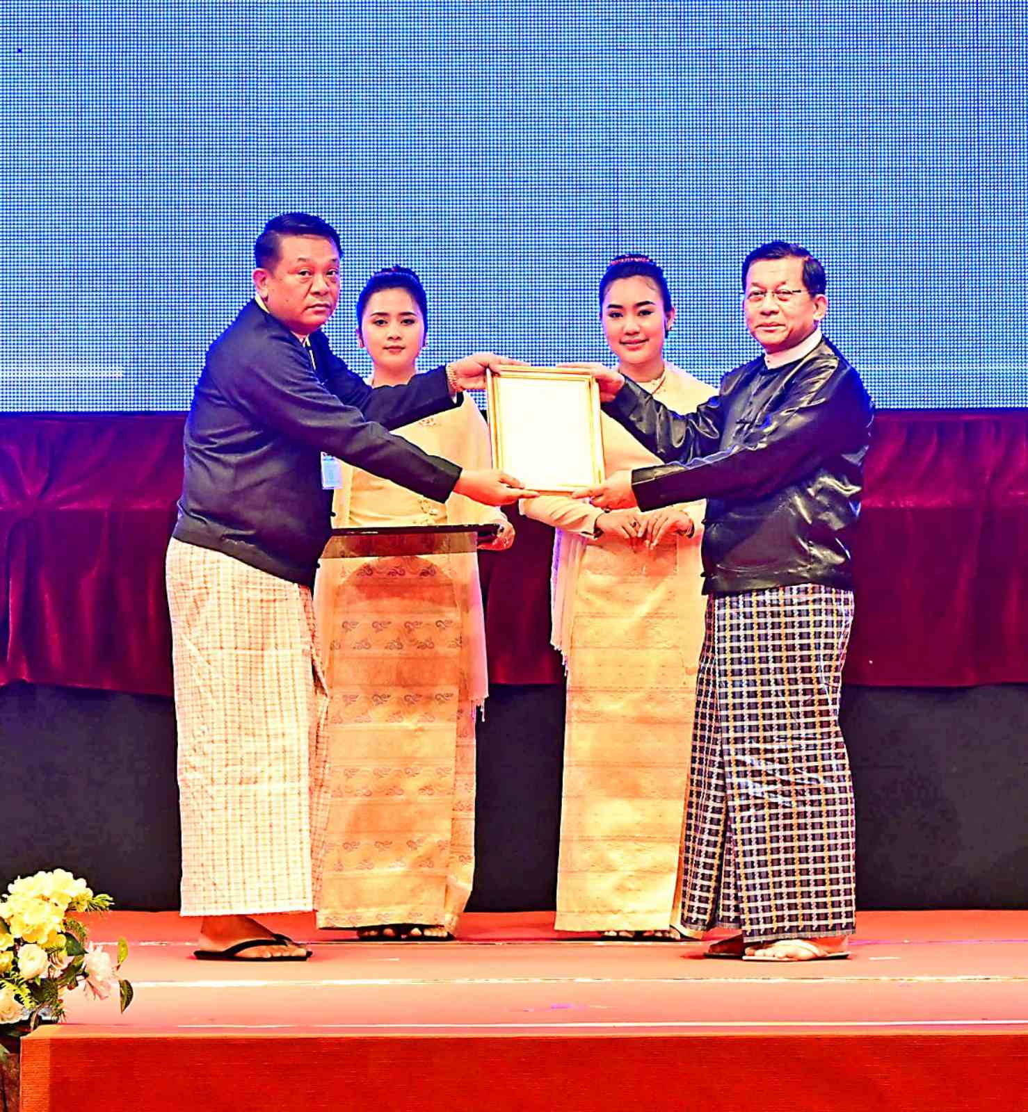 Afterward, the Senior General presented honorary cash awards to U Myint Thein and Dr Nu Nu Khin and cordially greeted them.