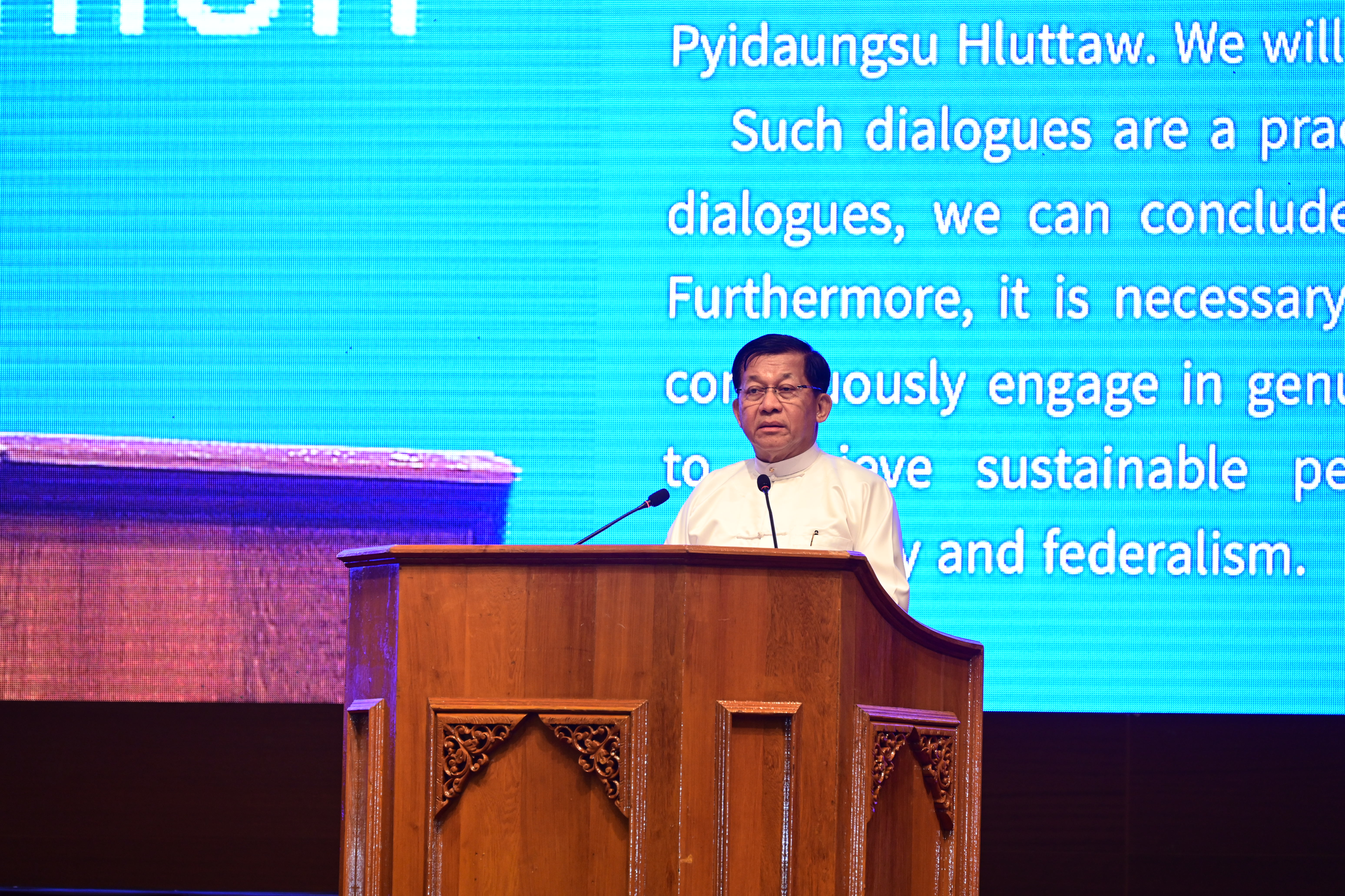 I wish to underline here that demanding our needs by holding arms, prioritizing our own aspirations based on tribalism hold back the development of these people. We have to be aware that it is deviation from democracy and is not the right way. Our interests and aspirations must be discussed, negotiated, and decided in the respective Hluttaws that emerged from the democratic elections.