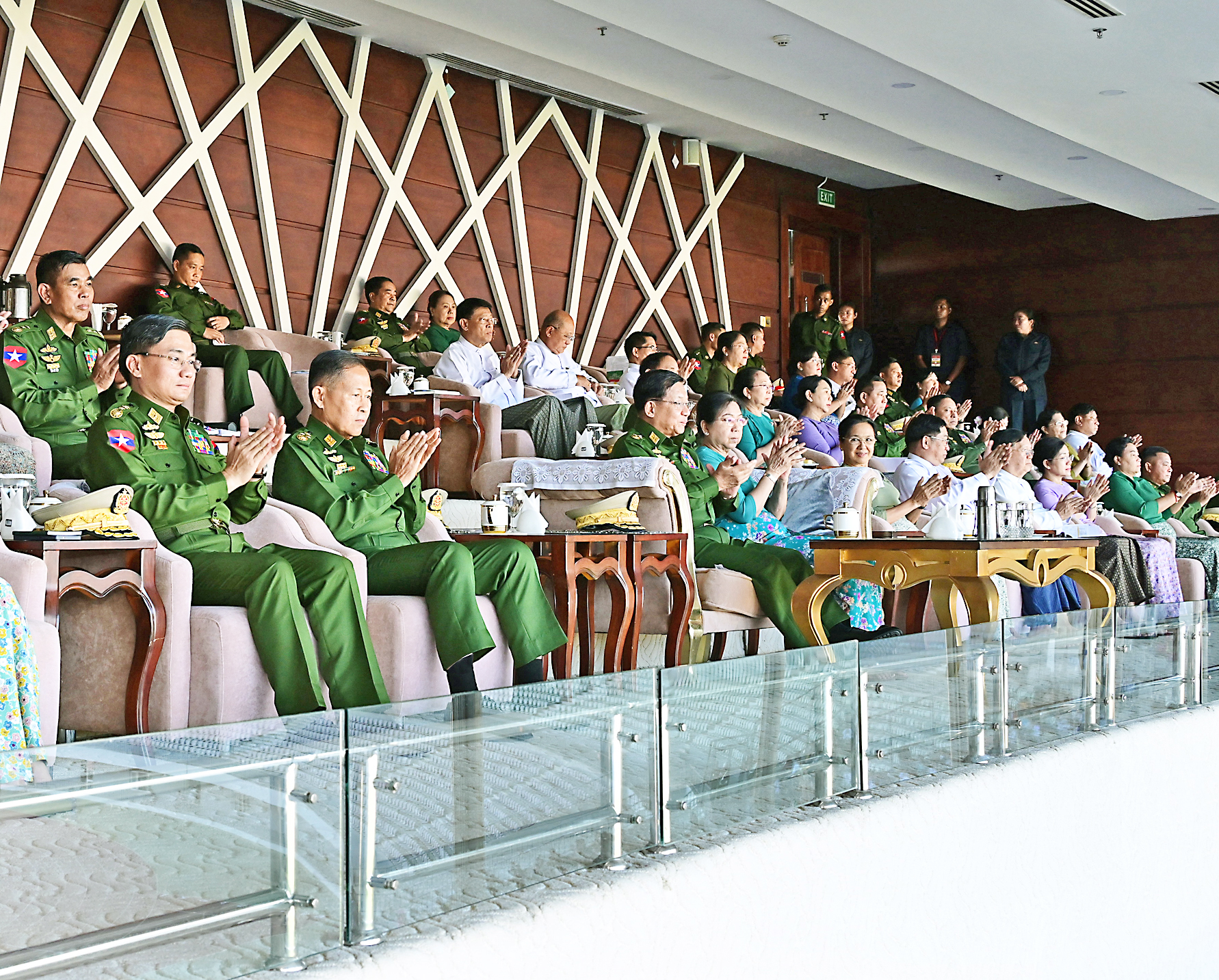 Also present together with the Senior General were wife, Daw Kyu Kyu Hla, SSPC Vice Chairman Deputy Commander-in-Chief of Defence Services Commander-in-Chief (Army) Vice-Senior General Soe Win, SSPC member Chief of General Staff (Army, Navy and Air) General Kyaw Swa Lin and wife, union level dignitaries, union ministers and wives, senior military officers from the Office of the Commander-in-Chief and wives, the Nay Pyi Taw Command commander, officers, other ranks and families of office/department of the Office of the Commander-in-Chief (Army, Navy and Air), officers, other ranks and families of battalions and units under the com-mand of Nay Pyi Taw Command, trainees of Tatmadaw Football Academy, invited guests and members of the competing teams.